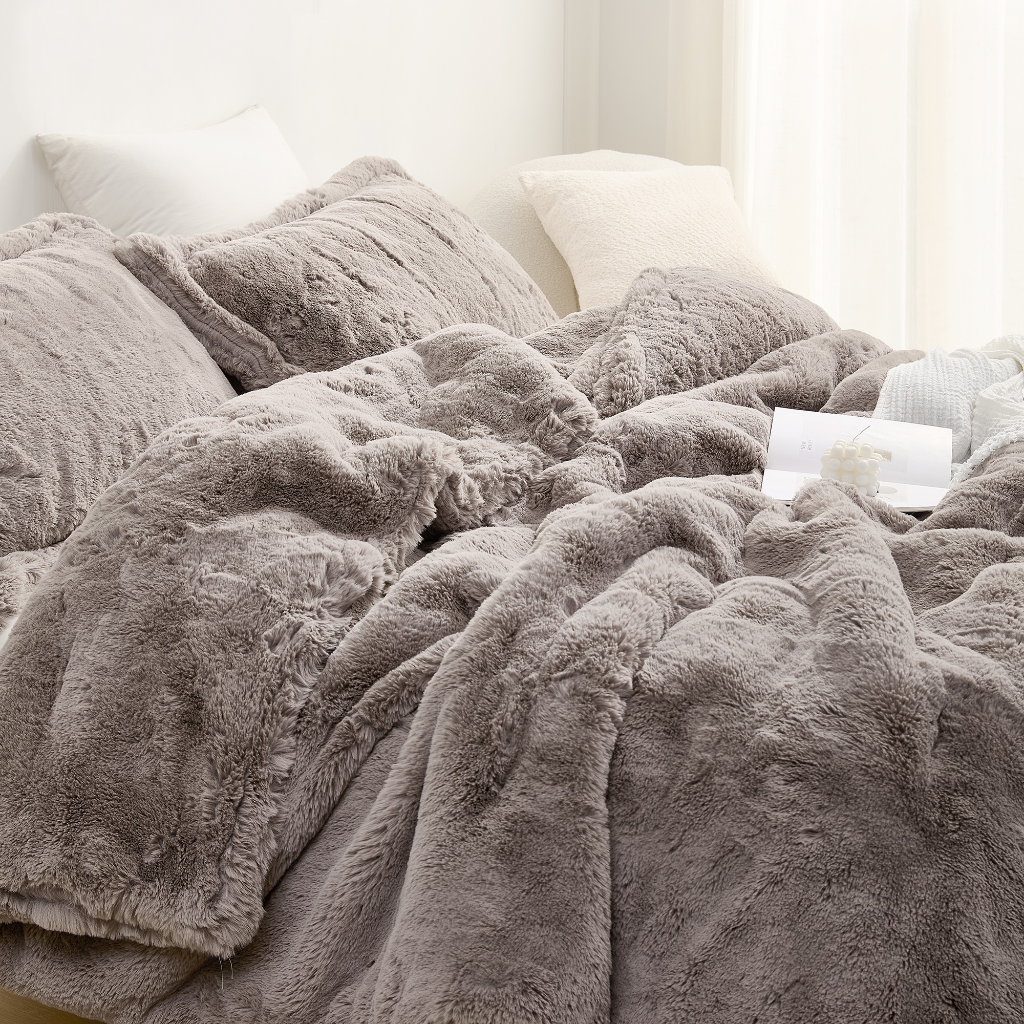 If you can't find a cozy plush comforter that is thick, heavy, oversized, and soft enough for you, we dare you to remain unsatisfied with the 1250 Chunky Bunnies® 2X Coma Inducer® Alaskan King faux-fur Comforter Set in Taupewood (if this plush comforter doesn't do it for you, we fear there may not be anything out there for you). We've made lots of heavy, supremely soft comforters under the Coma Inducer® name, but this thick, faux-fur Alaskan King comforter is currently our heavy-weight champion. Because of its heaviness, we do not recommend this thick, plush Alaskan King comforter for children under 12 or for anyone who gets warm when they sleep (we have plenty of cozy cooling comforters if that's your thing).