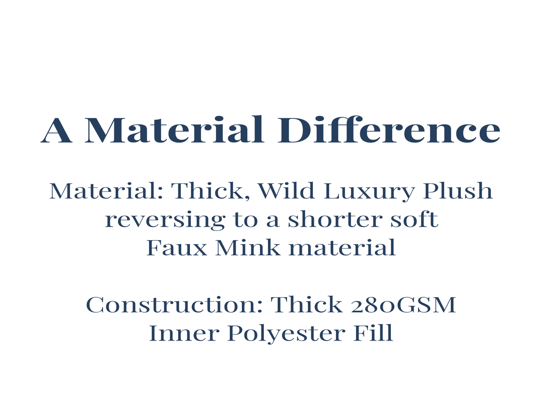 - Material: Thick, Wild Luxury Plush reversing to a shorter soft Faux Mink material