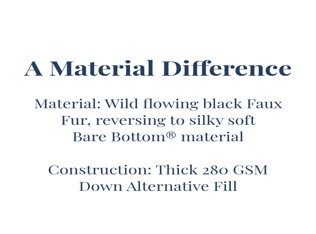 - Material: Wild flowing black Faux Fur, reversing to silky soft Bare Bottom® material
