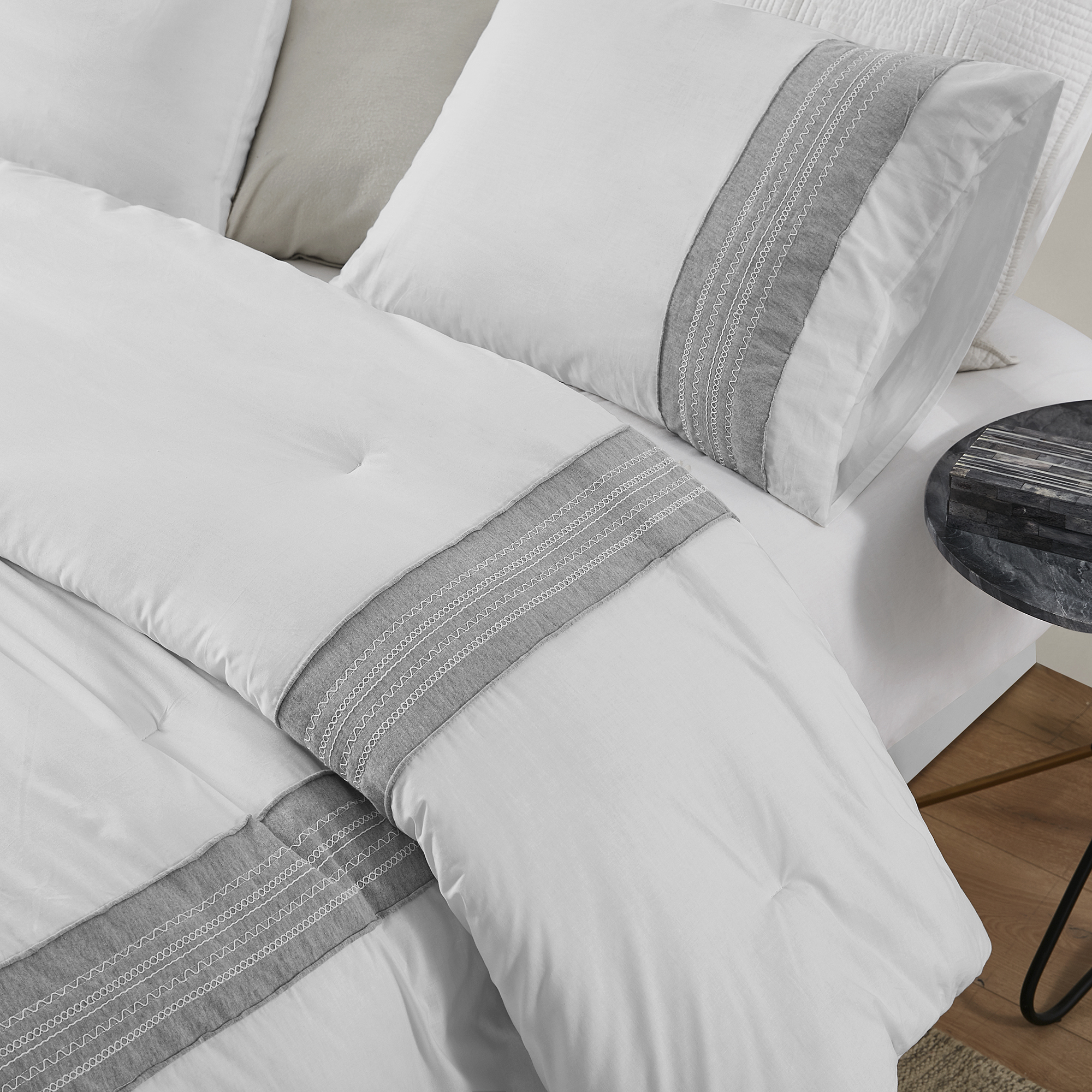 Boutique Border Textured Queen Comforter - Hotel Gray