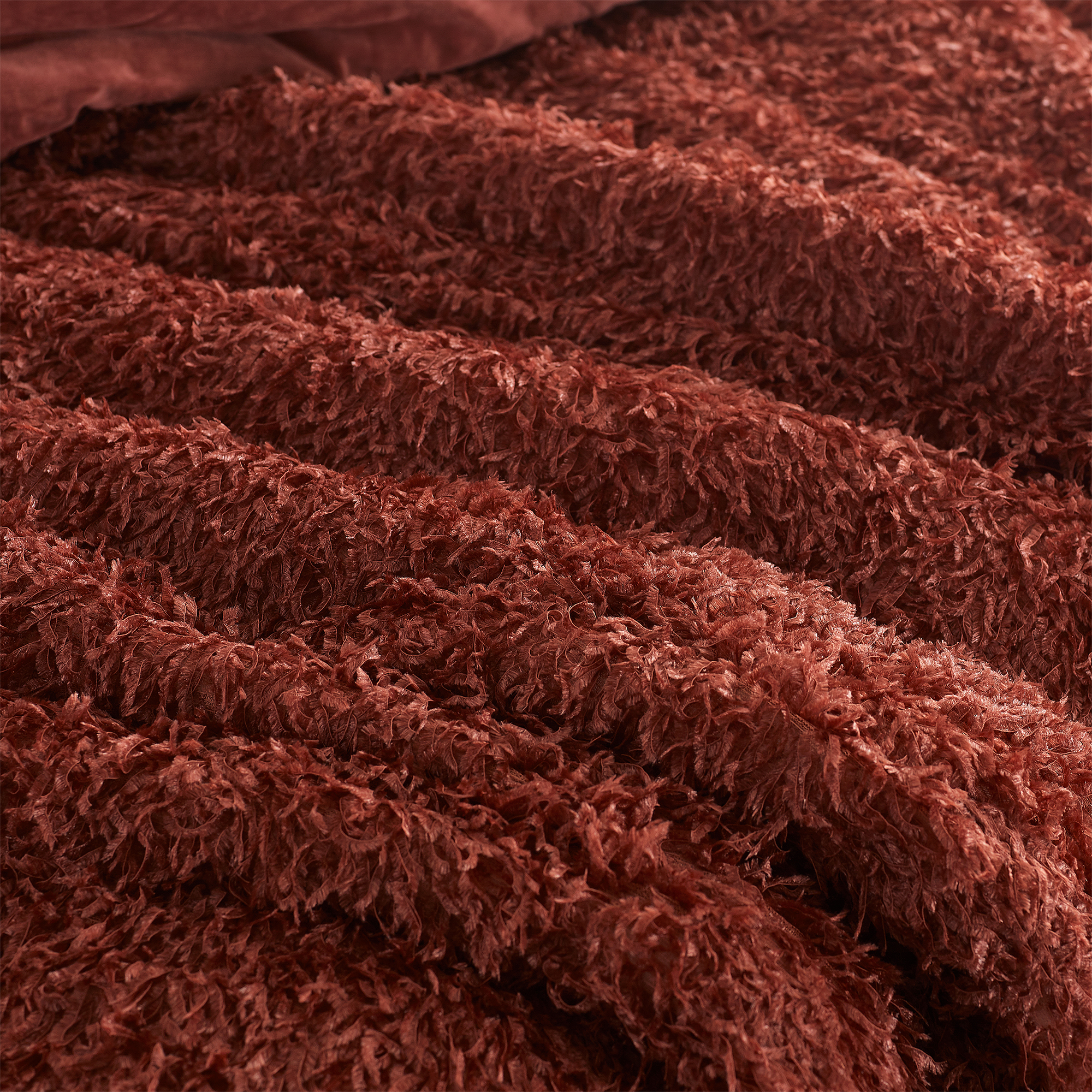 And even though the front of this burgundy Twin, Queen, or King oversized comforter is covered in feathers, you don't have to worry about quills poking you while you sleep. This oversized faux feather Twin, Queen, or King comforter is soft to the touch, and not just on the front! The reverse side of this ultra cozy Twin, Queen, or King extra large comforter is made with a short plush that is incredibly soft to the touch. The combination of comfy faux feathers, cozy plush, and true oversized Twin, Queen, or King dimensions makes this oversized Twin, Queen, or King bedspread a luxuriously comfortable part of your soft bedding. Combining truly one of a kind style with stellar comfort makes this soft Twin, Queen, or King bedding essential the perfect match for any bedroom!