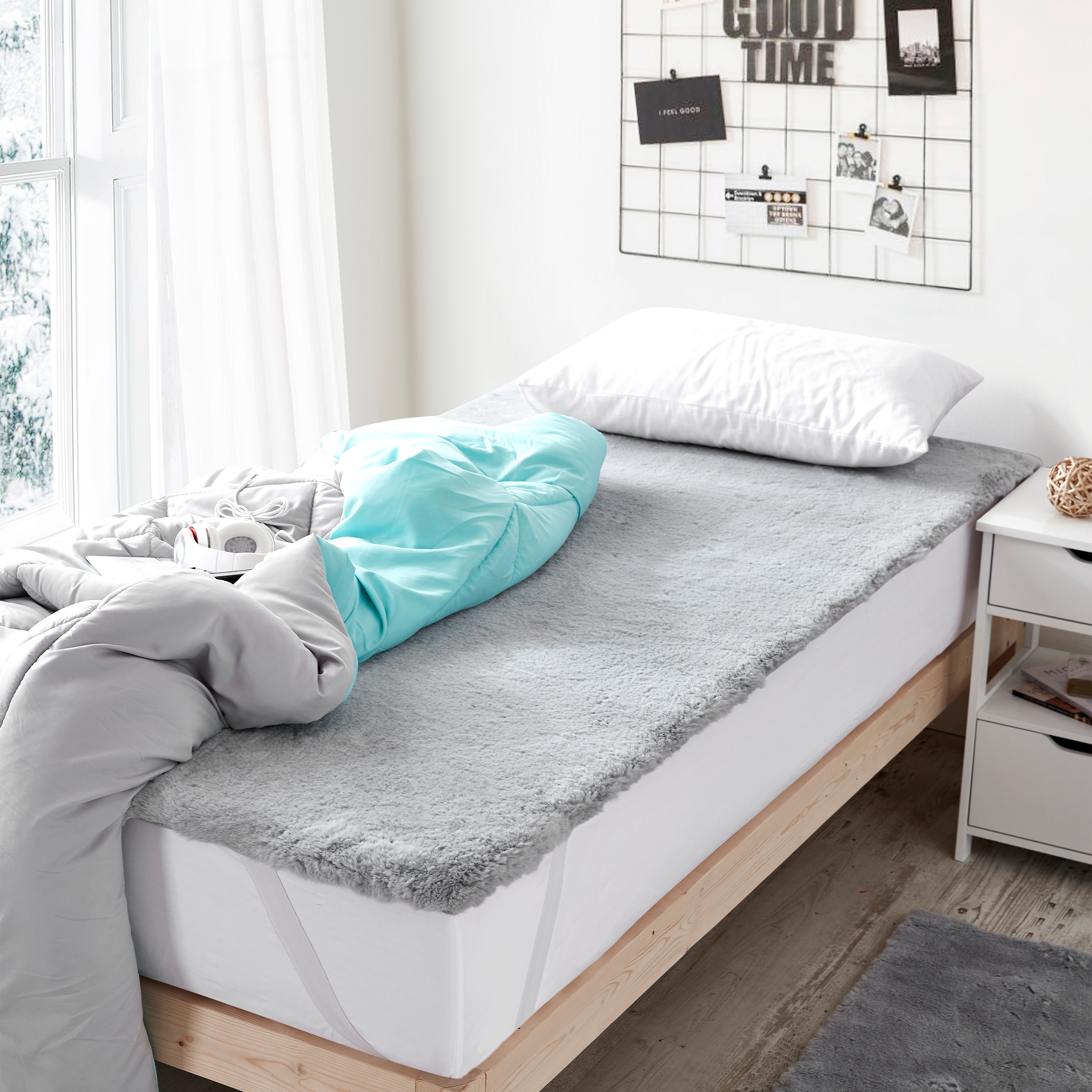 If you’re a real Coma Inducer® addict, you may have wished that you can cover every inch of your Twin, Twin XL, Full, Full XL, Queen, King, or California King size bed in our high quality bedding essentials. Your wish is our command! We have expanded our luxury bedding brand to encapsulate more than just overly plush extra large comforter sets, and now offer sheet sets, throw blankets, and even plush Twin, Twin XL, Full, Full XL, Queen, King, or California King mattress toppers as well. Crafted with the same high quality bedding materials that make our signature oversized comforters famous, the Chunky Bunny - Coma Inducer® Bed Topper - Glacier Gray is a piece of super cozy Twin, Twin XL, Full, Full XL, Queen, King, or California King bedding that will allow you to experience even more Coma Inducer® bedding excellence than ever before. This plush faux fur mattress topper is available in any mattress size so you can enjoy a proper fit and instantly upgrade your Twin, Twin XL, Full, Full XL, Queen, King, or even California King size bed with new levels of irresistible bedding coziness.