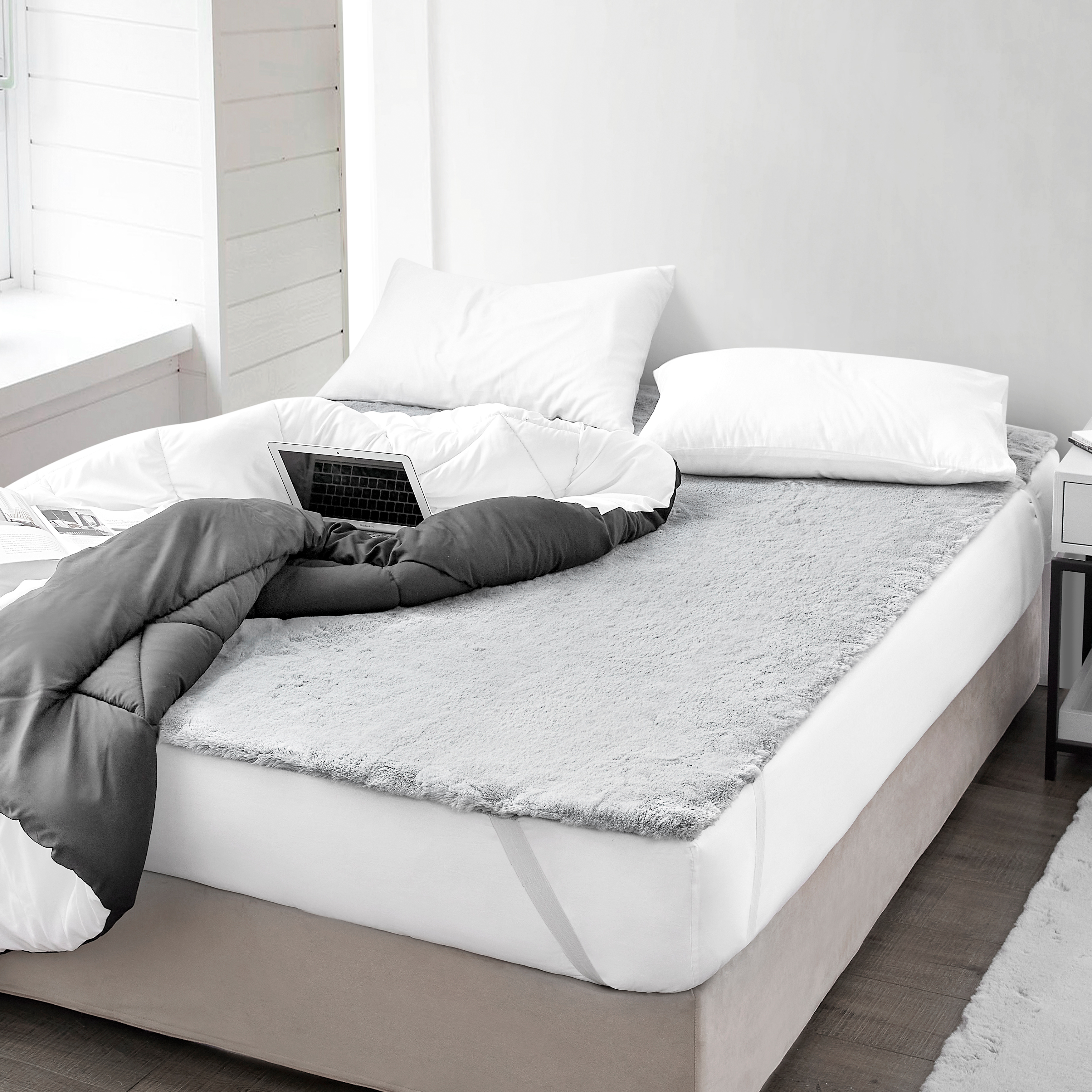 If your Queen size mattress needs an upgrade, a thick Queen mattress topper is a must! But with options for Queen size mattress topper materials ranging from duck down, to memory foam, to pillow polyester, how do you find the best Queen bedding accessory to transform your Queen mattress from uncomfortable back to plush and cozy? Take it from us at Byourbed, where our goal is to create high quality Queen bedding essentials so out of this world comfy that you begin to feel as if you are really one with your bed–try a Coma Inducer® plush Queen mattress topper! The Chunky Bunny - Coma Inducer® Queen Bed Topper - Glacier Gray is crafted with our signature Chunky Bunny plush faux fur, for an extra cozy addition to your Queen size bed that rivals any Down mattress topper, memory foam mattress topper, and especially basic pillow style mattress toppers.