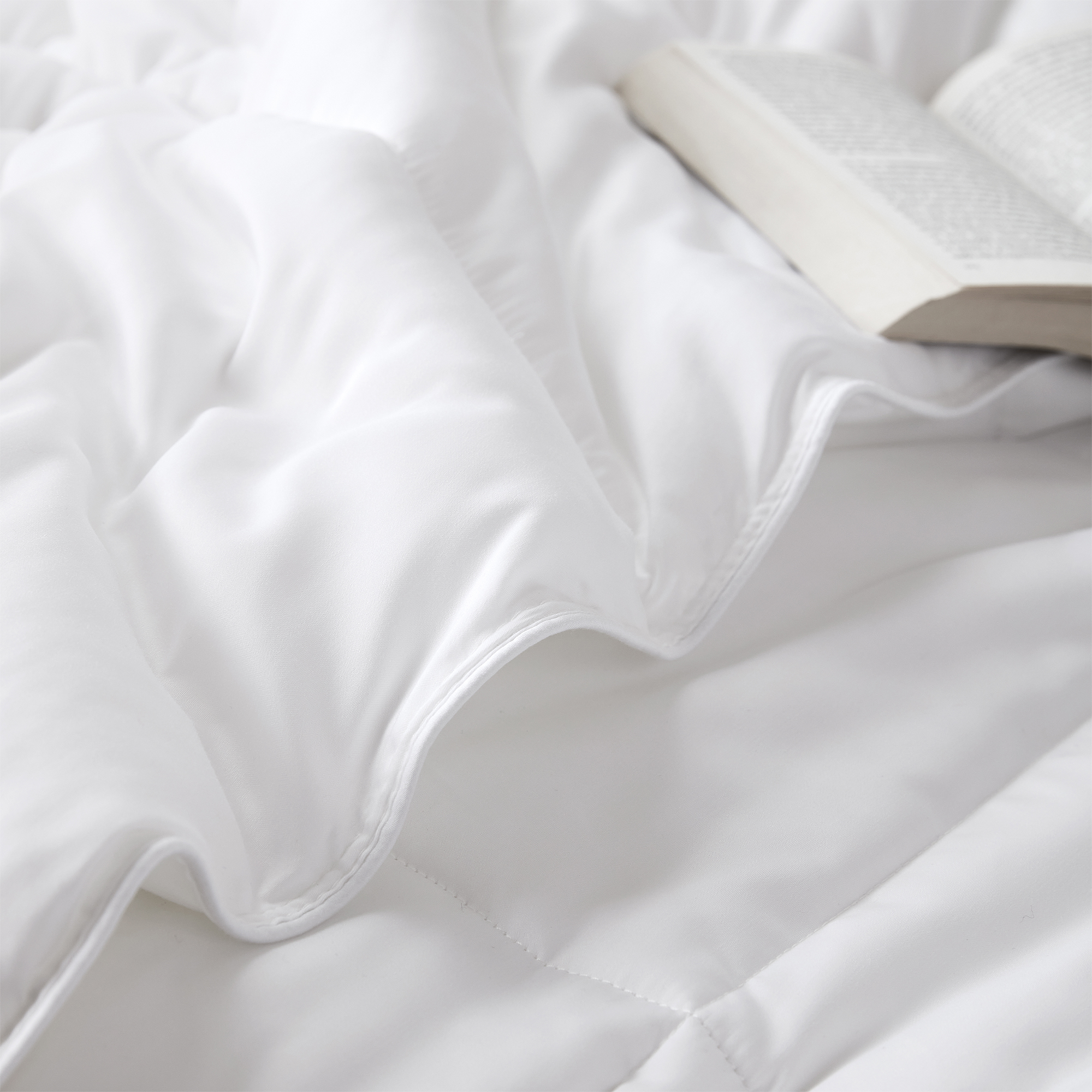 It can be a challenge to find an oversized Queen comforter set that is not made with thick faux fur, fleece, sherpa, or other heavy bedding materials. Thankfully, at Byourbed we believe that you deserve high quality Queen extra large bedding all year long, which is why we offer a selection of oversized Queen summer comforters that are perfect for staying cool and cozy even during the warmest months. If you’re looking for a silky Queen XL comforter set for the summer, our Cool as a Cucumber - Coma Inducer® Oversized Queen Cooling Comforter - Iceberg White is for you!