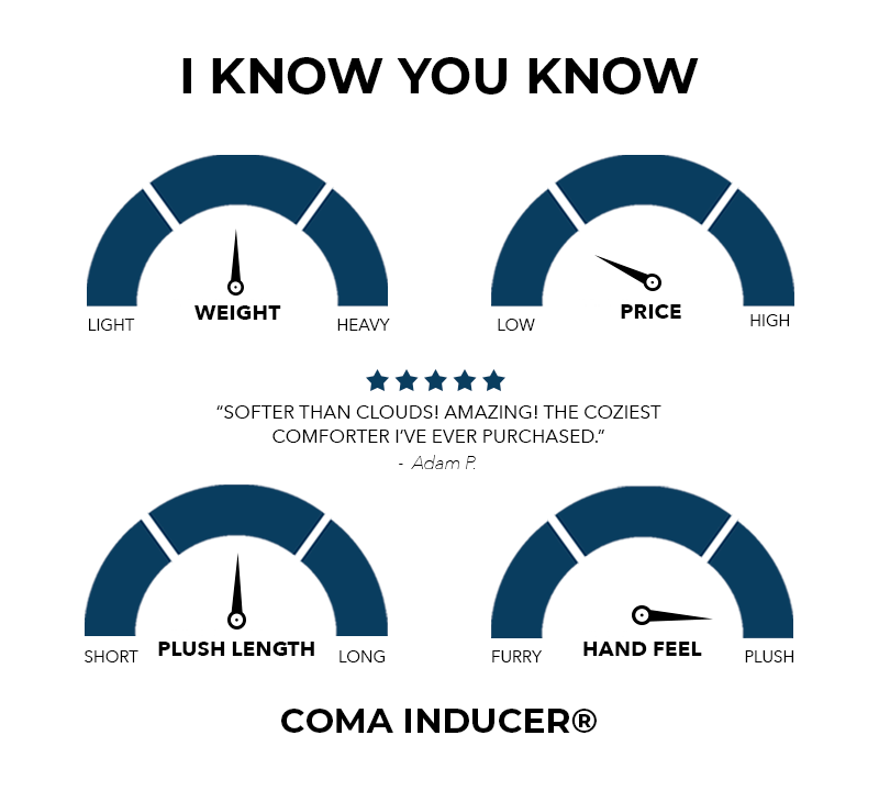 Inspired by something so great that it needs no other words. "I Know You Know®" says it all. There is no need to brag that you have this insanely plush Coma Inducer®. There is no need to get into a long winded explanation on why you love cozy bedding. There is no need to tell your boss why you were late for work for the 4th day in a row. Okay...that last one might need some explaining, but you get the point. "I Know You Know" is a mantra. It's the best and only way to describe the thick, touchable softness of this 350gsm plush Coma Inducer®.