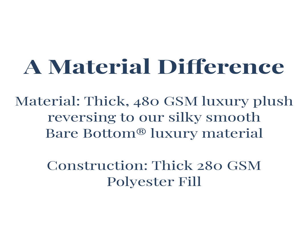 - Material: Thick, 480 GSM luxury plush reversing to our silky smooth Bare Bottom® luxury material