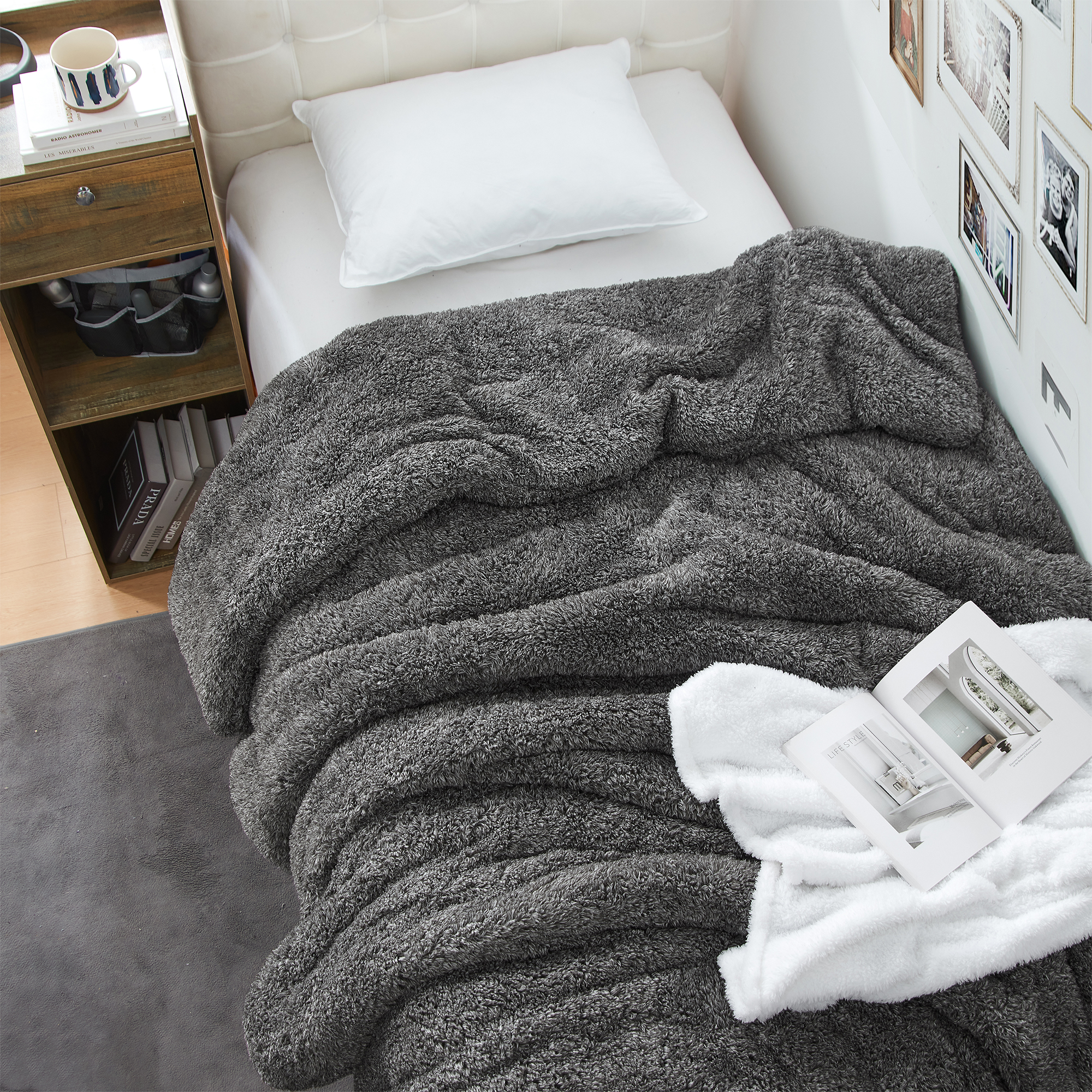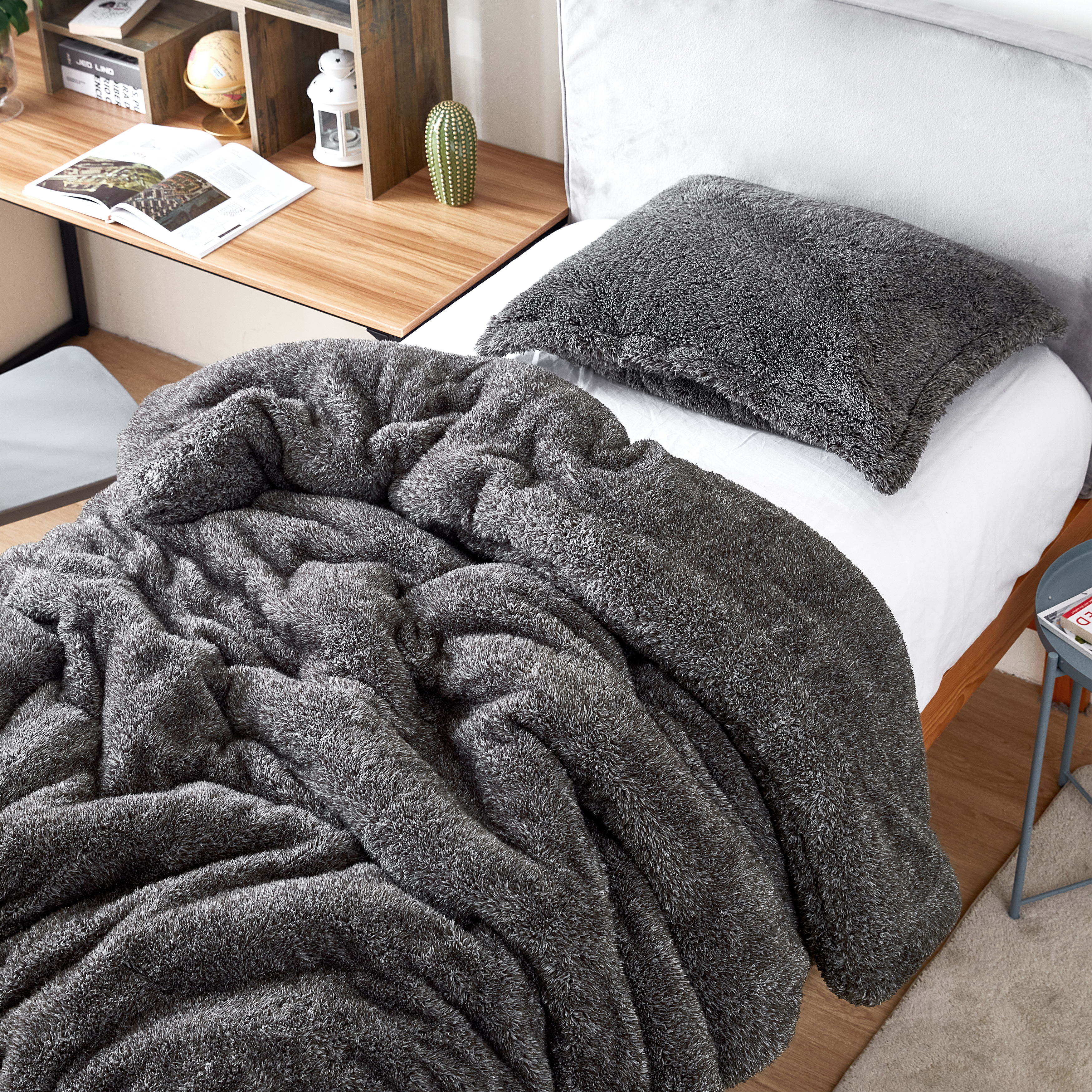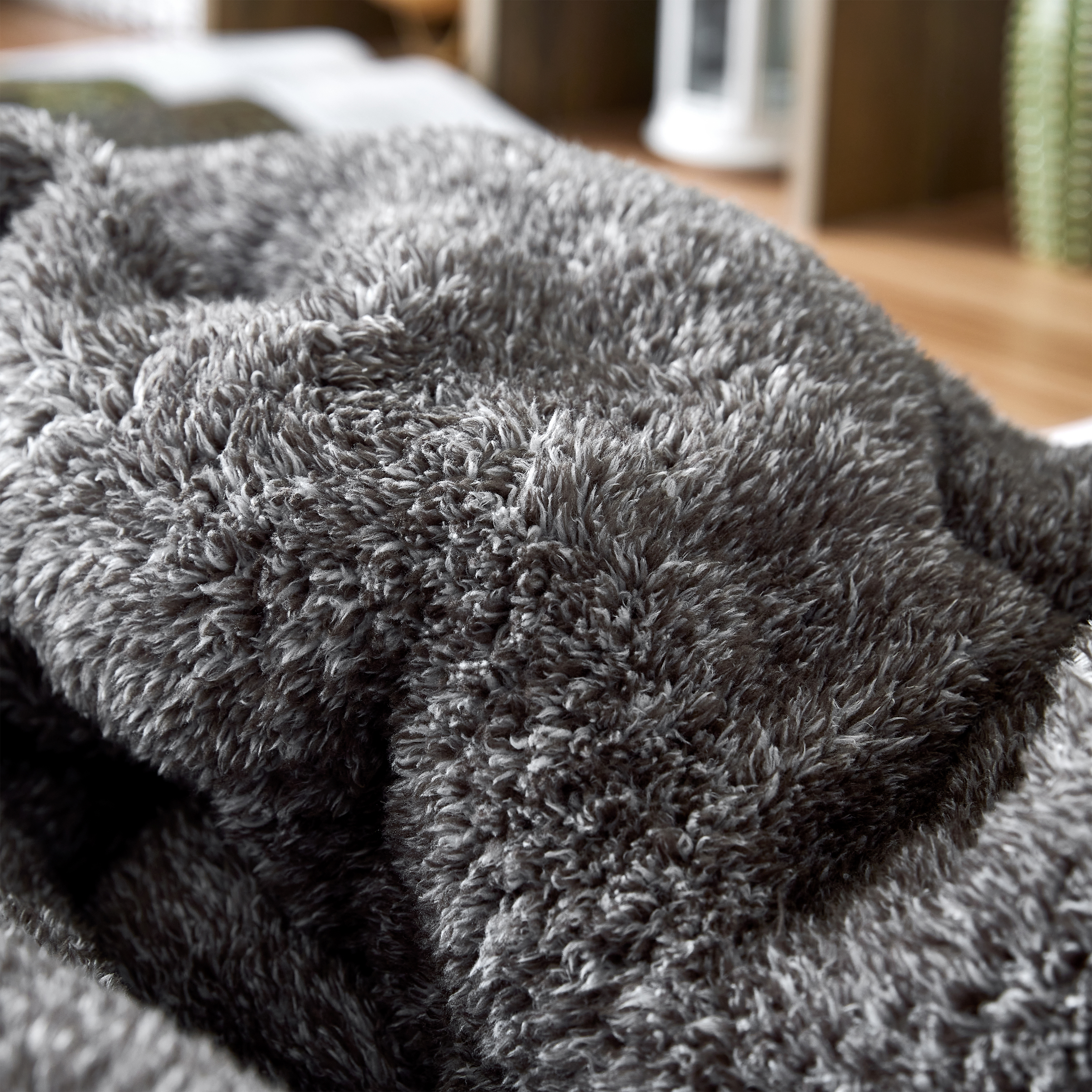 Not only are you going to feel like a cozy little marshmallow when you're all snuggly and toasty underneath your supremely soft Original Plush comforter, but you're also going to feel like a SMART little marshmallow because this gray comforter is also machine-washable, affordable and trendy! The Frosted Polar Marsh color has a unique frozen look to it with a subtle light wash over the dark gray plush (sort of looks like frost covering a field!). Additionally, this shade of dark gray is special because in some lights, it looks slightly green! We love neutral bedding with a twist! Stay incomparably cozy with the Coma Inducer® Original Plush oversized comfy comforter in Frosted Polar Marsh!