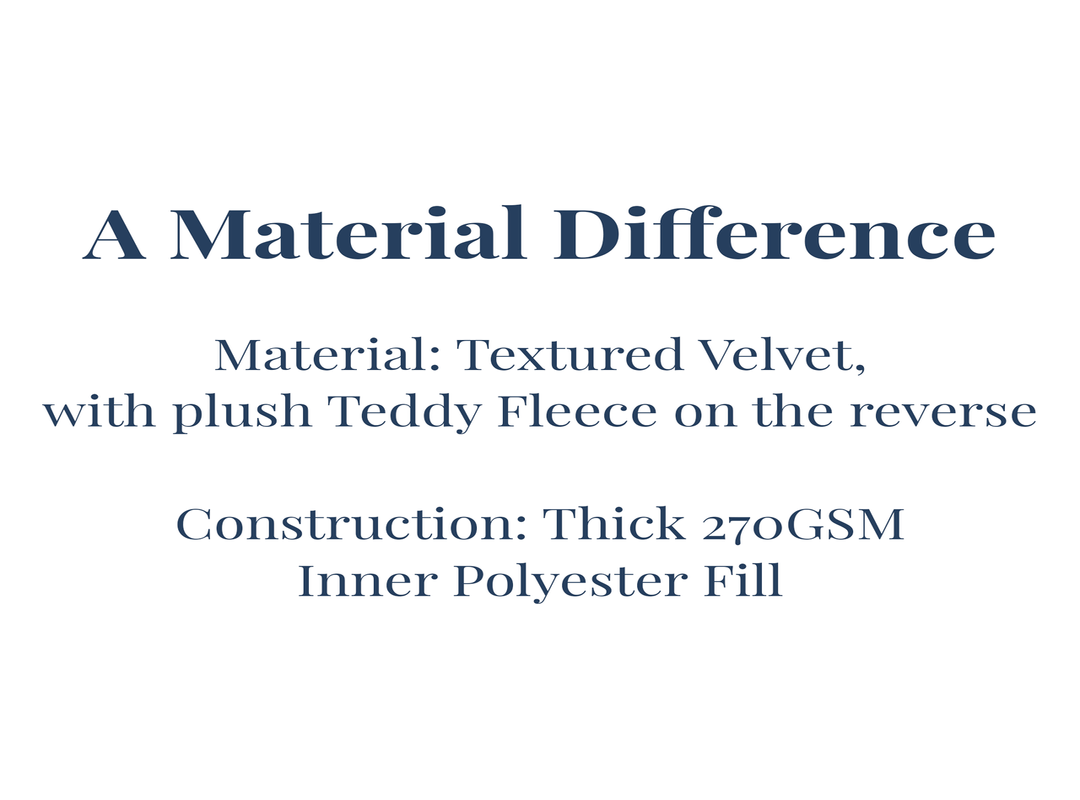 - Material: Textured Velvet, with plush Teddy Fleece on the reverse