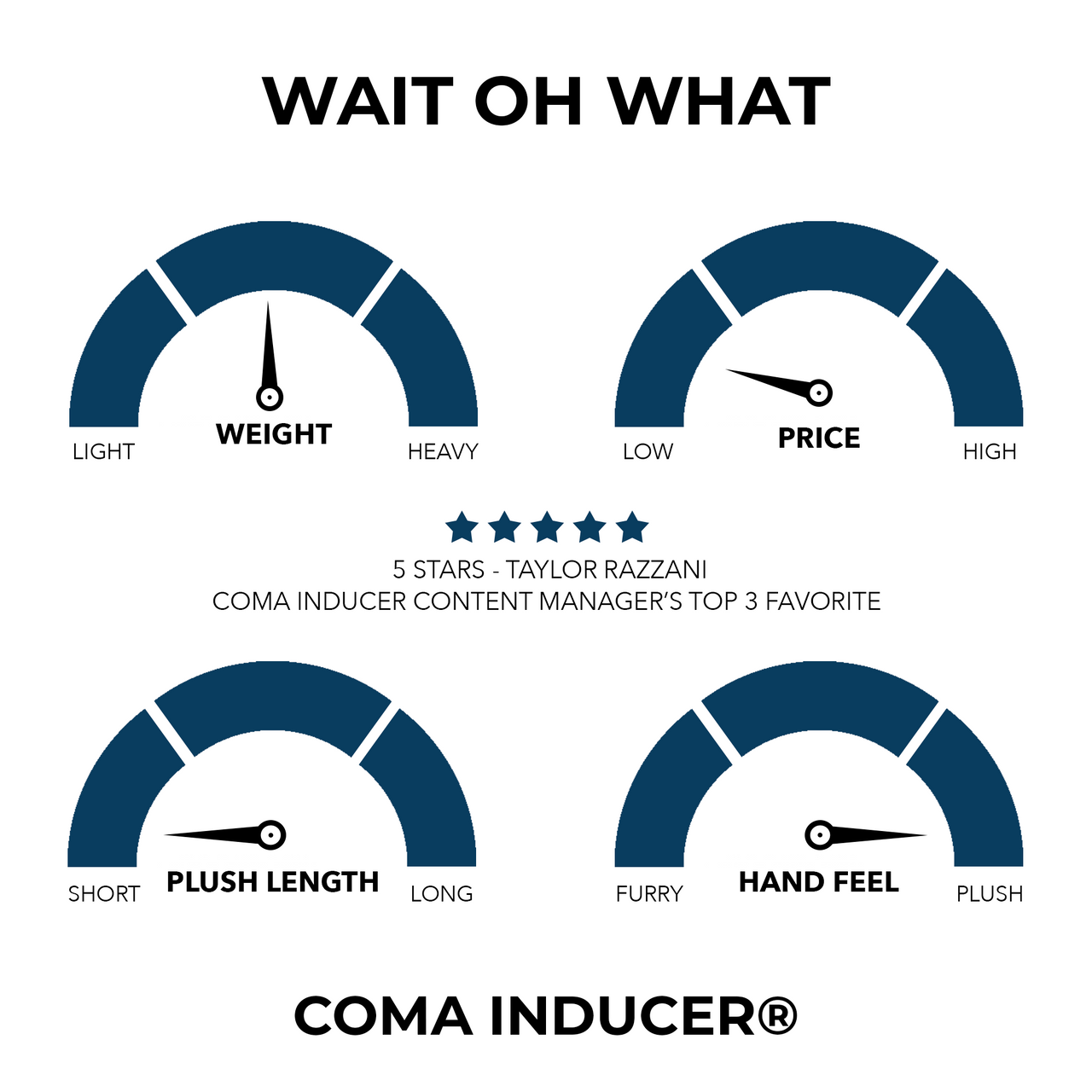Inspired by things that make you do a double-take. The unexpected causes enough shock to go back and inspect if you really saw or in this case felt what you thought you felt. Test it out... After you order this ultra plush Coma Inducer® leave it out for others to pass by and touch... you'll probably hear, "Wait ... Oh What!? Like what the {expletive} is this! It's so amazing and plush... I need one!" Wait Oh What creates an amazing bedding experience like nothing you've ever felt before and allows for such cozy deep sleep that you will pinch yourself to make sure that it is really real.