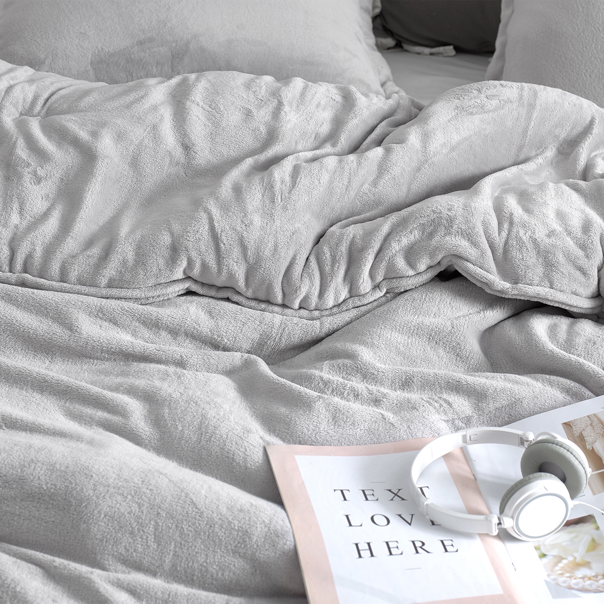 When you run your hand across this super soft Twin XL, Queen, or King comforter, you may find yourself saying "Wait...Oh What?!". This moment of shock would come from the ultimate plush feeling of this affordable Twin XL, Queen or King comforter. Made with a super soft plush, this comfortable Twin XL, Queen, or King comforter feels unbelievably cozy. Once that shock wears off, and you go to feel this soft Twin XL, Queen, or King comforter again, you'll definitely be excited to add it to your soft Twin XL, Queen XL, or King XL bedding. We wish we could describe to you how warm and cozy the Coma Inducer® Oversized Comforter - Wait Oh What - Tundra Gray feels, but you probably won't believe us!