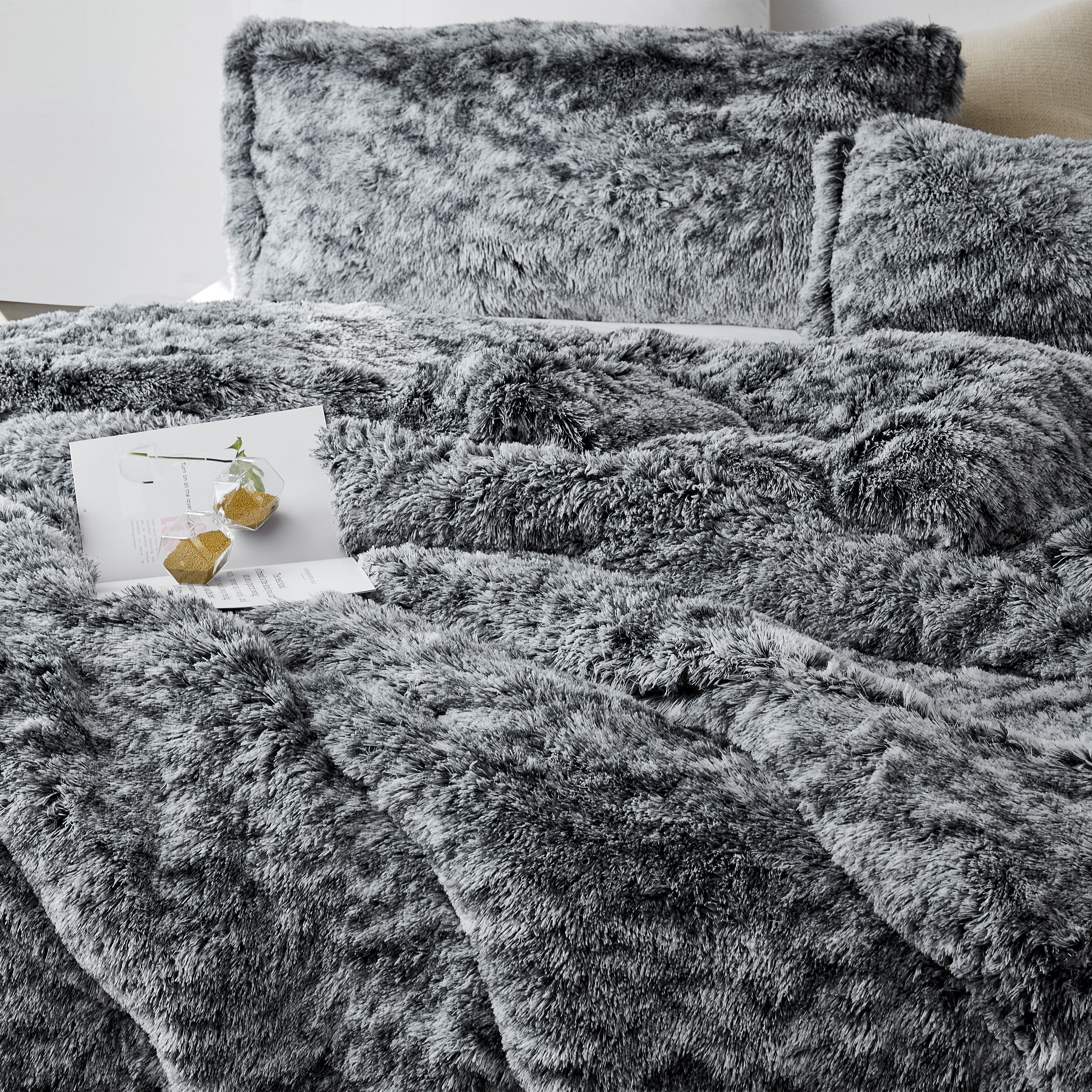 If you’re struggling to choose between a black Queen size comforter set and a gray Queen size comforter set, the Are You Kidding - Coma Inducer® Oversized Queen Comforter - Peppered Black presents a third option: both! This extra large Queen bedding set features silky strands of medium gray plush, speckled with black throughout for a dimensional Queen comforter set that is surprisingly eye-catching for a neutral Queen bedding piece. Brushing through the furry plush of this textured Queen oversized comforter set reveals more layers of black Queen bedding contrasted with light Queen bedding accents for a truly unique Queen comforter set that stands out on its own while easily matching any style of bedroom decor.