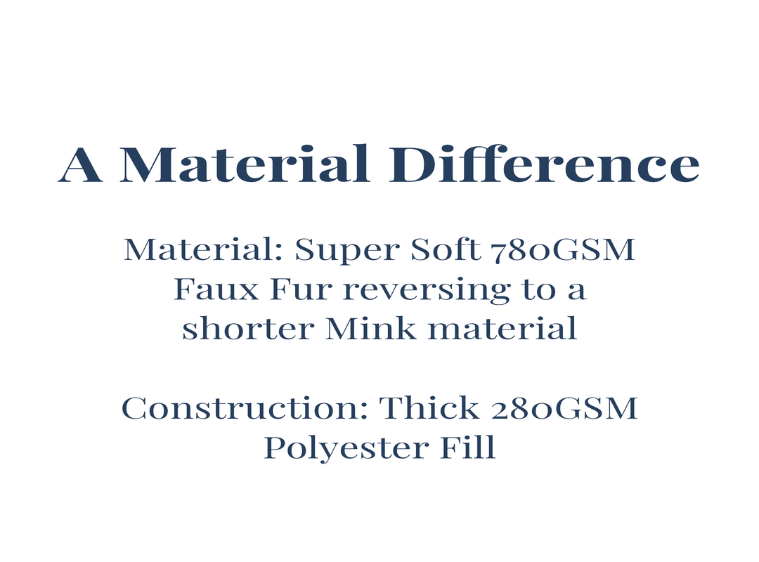 - Material: Super Soft 780GSM Faux Fur reversing to a shorter Mink material