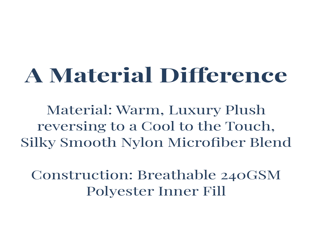 - Material: Warm, Luxury Plush reversing to a Cool to the Touch, Silky Smooth Nylon Microfiber Blend