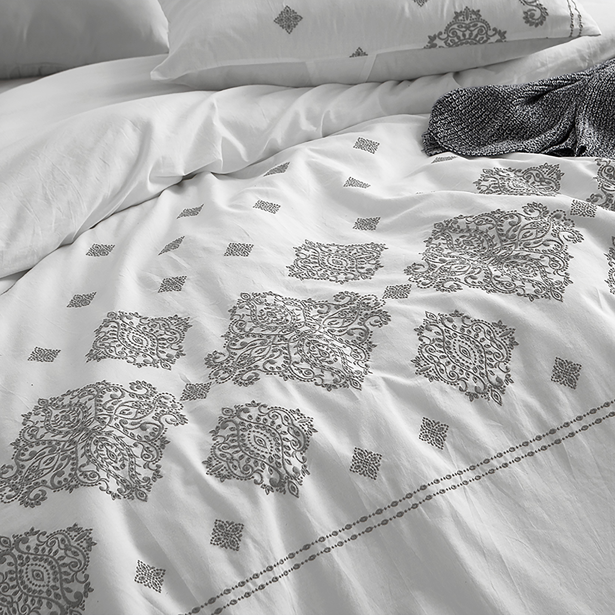 The best way to enjoy comfortable Twin XL bedding on your Twin or extra long Twin size bed is to make it oversized! An extra large Twin comforter will ensure that every inch of your Twin or XL Twin sized bed is covered up in high quality comfort, so you can completely wrap yourself up in the softest Twin XL bedding comfort. When you add an oversized Byourbed comforter, like our Phineas Gray Embroidered Twin XL Comforter, to your bedroom, you'll instantly notice the upgrade to your XL Twin bedding comfort. This soft cotton Twin extra large comforter with a thick inner fill will provide you with warm and cozy comfort that will make it easy to fall asleep on your Twin or Twin XL bed. And while this comfort is a great addition to your soft XL Twin bedding, it also helps that this oversized Twin comforter will add truly unique style to your bedroom decor.
