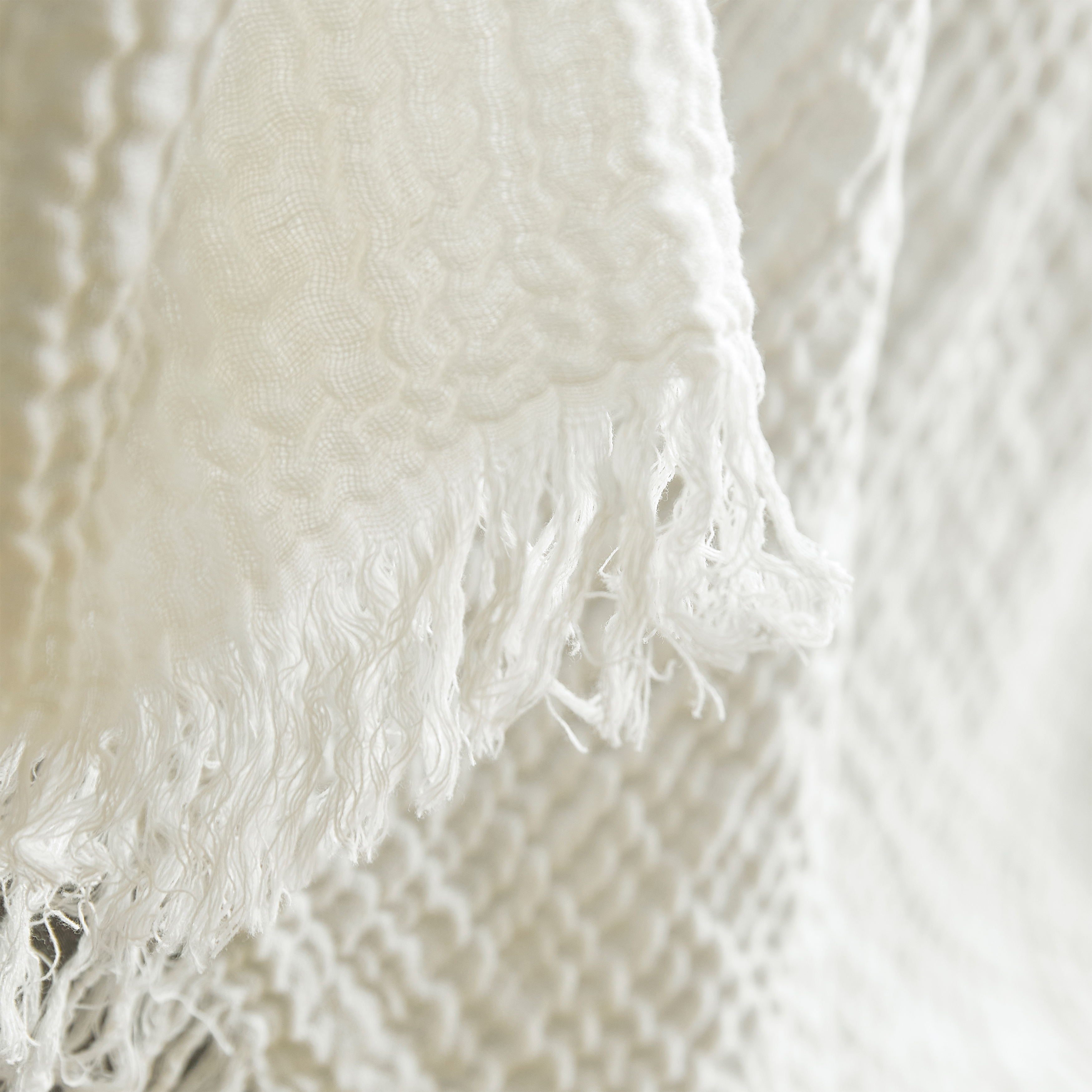 And you can always have this off-white machine washable Twin XL throw blanket close at hand thanks to its stylish appearance. Designed with a neutral color and a subtle yet impactful design, this fashionable Twin XL sized throw will easily fit into any room of your home. The color of this off-white Twin extra large throw blanket will easily blend with your home or bedroom decor and furniture, so it looks like it naturally belongs there. For a little added style, this textured throw blanket also has a rippled design that tapers off to fringe at the edges, for a boho chic appearance that you are sure to love!