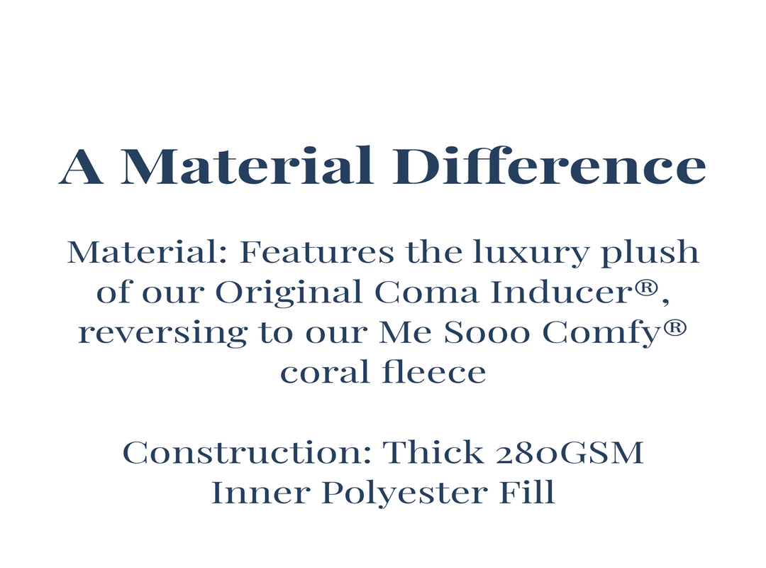 - Material: Features the luxury plush of our Original Coma Inducer®, reversing to our Me Sooo Comfy® coral fleece