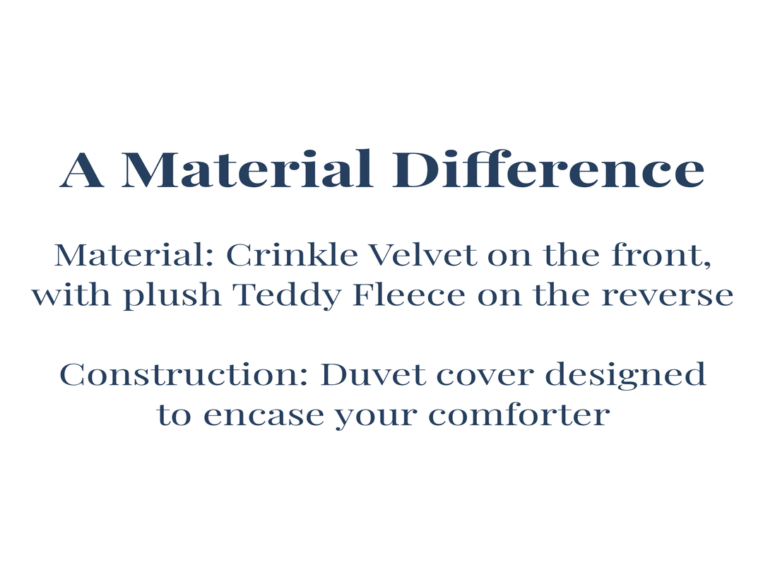 Inspired by crushed velvet, this Coma Inducer® is having a major crush on velvet. Taking the velvet crushed look and turning it into well styled bedding with the warmth you know from Coma Inducer® is what Velvet Crush is all about. The front sheen of short crinkle velvet reverses to an ultra warm Teddy Fleece, making your bedding both inviting by appearance and comfort.