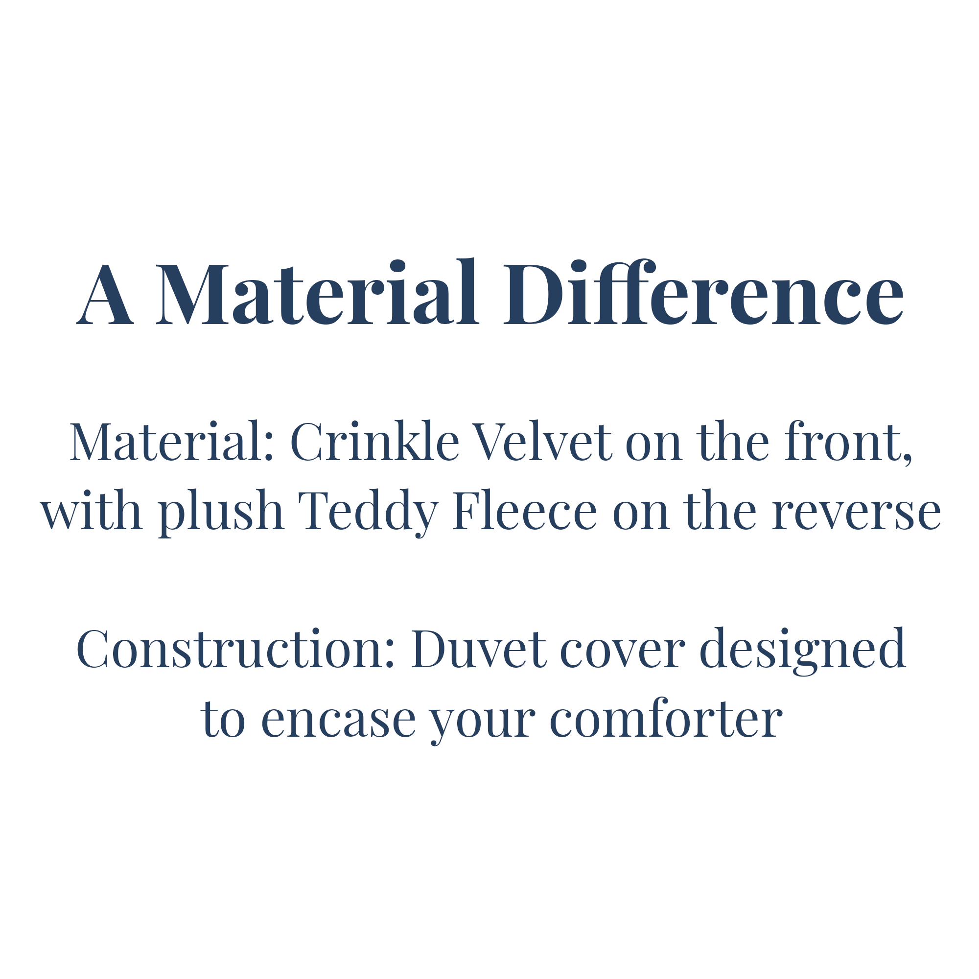 - Material: Crinkle Velvet on the front, with plush Teddy Fleece on the reverse