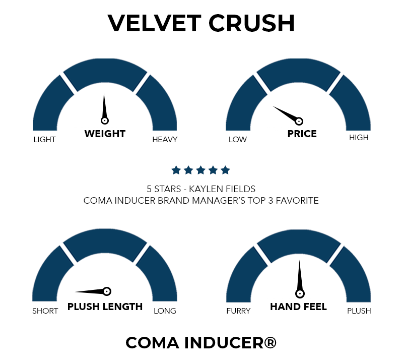 Inspired by crushed velvet, this Coma Inducer® is having a major crush on velvet. Taking the velvet crushed look and turning it into well styled bedding with the warmth you know from Coma Inducer® is what Velvet Crush is all about. The front sheen of short velvet reverses to an ultra warm Sherpa, making your bedding both inviting by appearance and comfort.