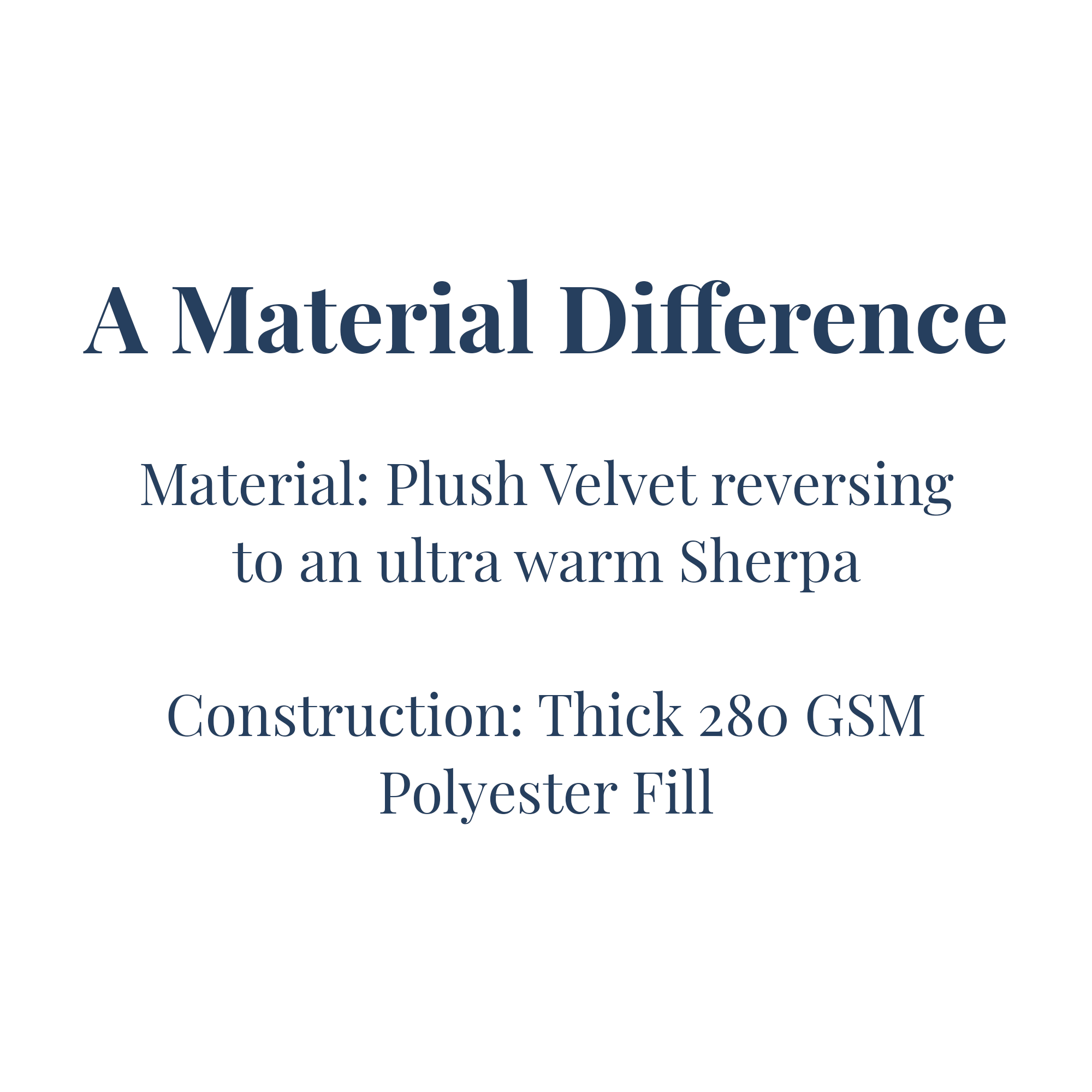 - Material: Plush Velvet in Purple, reversing to an ultra warm Sherpa