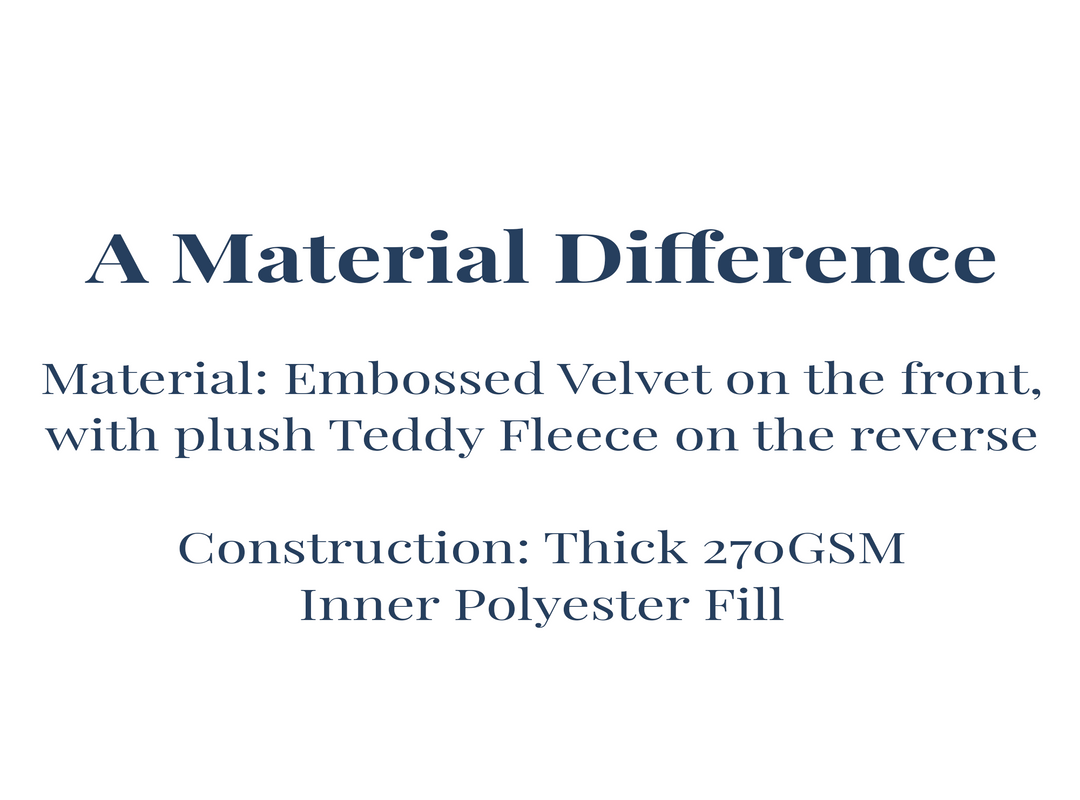 - Material: Embossed Velvet on the front, with plush Teddy Fleece on the reverse