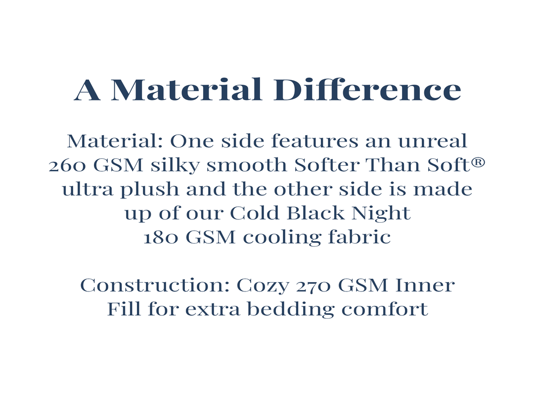 Inspired by sleep so good it has to be Better Than Anesthesia®. Have you ever met someone that was going under for surgery and they said "can't wait to get good sleep". The good news is that you don't need surgery to get good sleep, you can get all of the Coma Worthy Sleep® you need with our Better Than Anesthesia Coma Inducer® oversized plush comforter. Our Coma Community fans have been drawn to our Some Like It Hot - Some Like It Cold Coma Inducer®, so we figured we would take the same concept of one warming plush side and one side of cooling softness to the next level! If you know Coma Inducer®, then you know we never leave well enough alone. We are constantly improving with one goal in mind... to give you the greatest night's sleep possible! It helps us get good sleep when we know that you're enjoying a cozy plush experience unlike any you've ever had! That's our mission and we think we've done it again with Better Than Anesthesia's dual warmth and cooling comfort! Having the right temperature that meets your body's needs is a critical component to great sleep. Better Than Anesthesia's versatile 260 GSM unreal silky smooth Softer Than Soft® ultra plush and Cold Black Night 180 GSM cooling comfort reverse material combine to help you experience the BEST of both worlds. Paired with a 270 GSM Grade A poly fill, this really is the oversized comforter of your dreams. Skip the surgery and start enjoying improved sleep today with our Better Than Anesthesia Coma Inducer®.