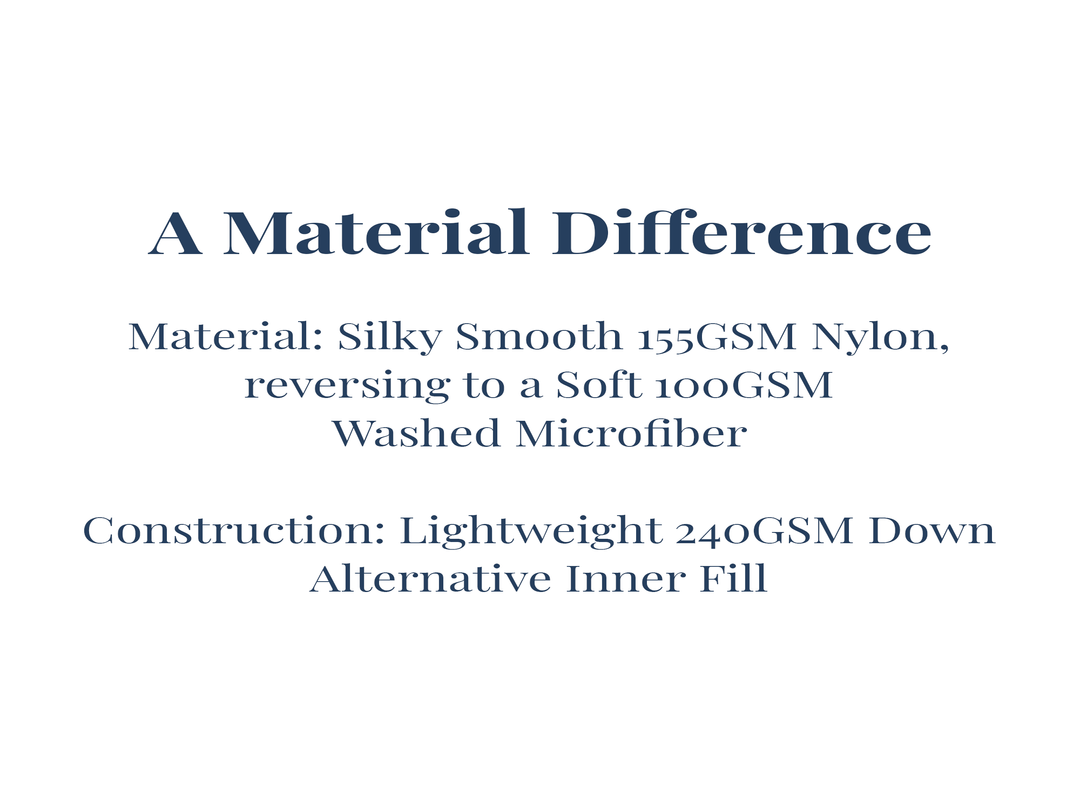 Inspired by serenity. Calm, cool, and collected. Our cooling Comas evoke that serendipitous feeling, especially the Calm Cool Collection Coma Inducer®. Truthfully, we like things that are a bit toasty and cozy warm is our thing. However, we also enjoy using materials that are beyond soft. Anything that is pleasing and addictive to the touch, that turns your bed into a sanctuary of comfort and peace... yeah, that's Coma Inducer's thing! Our Calm Cool Collection® has one cooling side of 155 GSM pure Nylon and one calming side of 100 GSM washed microfiber with a Down Alternative inner fill that makes it an irresistible Summer / all season Coma Inducer®. When you think of Coma Inducer®, you may initially think of Winter warmth, but now you can rest easy knowing that you're covered in the Summer or year-round if you are a warm sleeper with our Calm Cool Collection®.