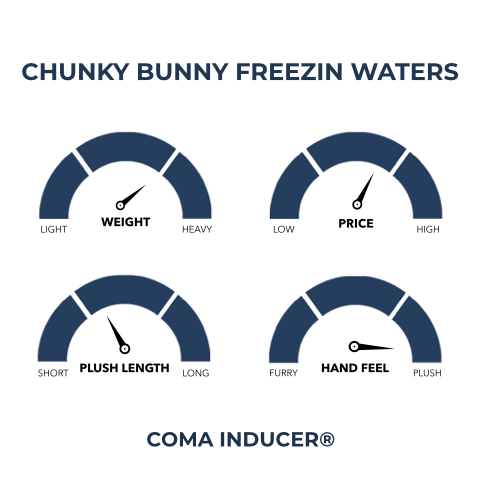Inspired by soft, overly plump bunnies that are cuddled up from the cold. Think about the shift from vibrant lakes, rivers, streams, and ponds to a frozen standstill of time and the peacefully cozy feeling you get while watching Mother Nature transform into a wintery wonderland from your comfy bed. Now think about the warmth you feel from the idea of snuggling with soft little bunnies. Put them together and you get the soft, warm coziness that is the Chunky Bunny® Freezin Waters Coma Inducer®! You could prepare for winter by gathering a ton of baby bunnies on your bed, but we don’t recommend it. It can be messy and dangerous for the bunnies, and good luck getting them to stay still. Luckily, our Chunky Bunny® is as real as it gets without being real! You can feel the same irresistibly soft touch through the 700 GSM front and 450 GSM reverse of high quality faux rabbit fur plush. Indulge in Bunny Heaven and actually look forward to the long nights and frigid temperatures of winter when you snuggle up with our Chunky Bunny® Freezin Waters Coma Inducer®.