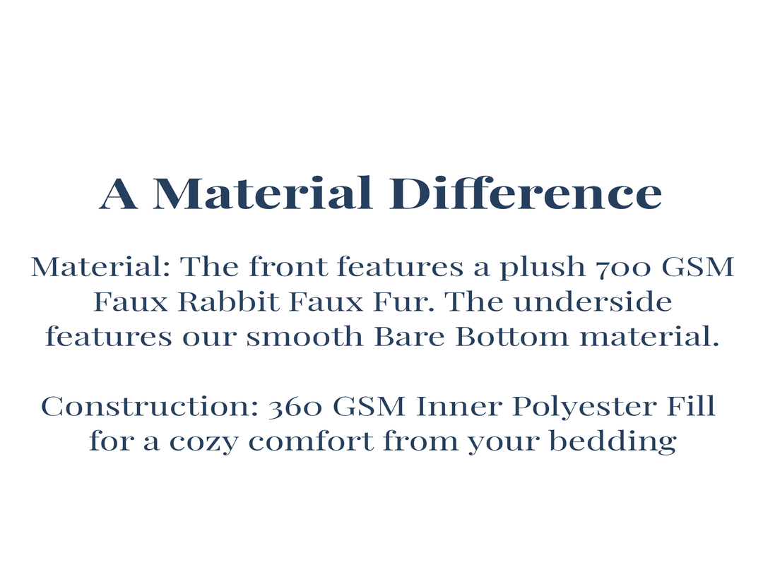 Inspired by soft, overly plump bunnies that make you want to hold and caress them against your skin… the pinnacle of being cozy! Our Chunky Bunny Peak of Cozy is as real as it gets without being real (because that would be sad). 700 GSM of rabbit faux fur plush material reversing to our silky smooth Bare Bottom® material creates a cozy soft, snuggle up warmth that cannot be compared. It is a plush slice of cozy pure goodness! A "please don't disturb me because I'm too incredibly comfortable" or a "you better believe I'm going to be late for work" type of cozy. If you are looking for a comforter that can do all that, then you've found it with our Chunky Bunny Peak of Cozy.