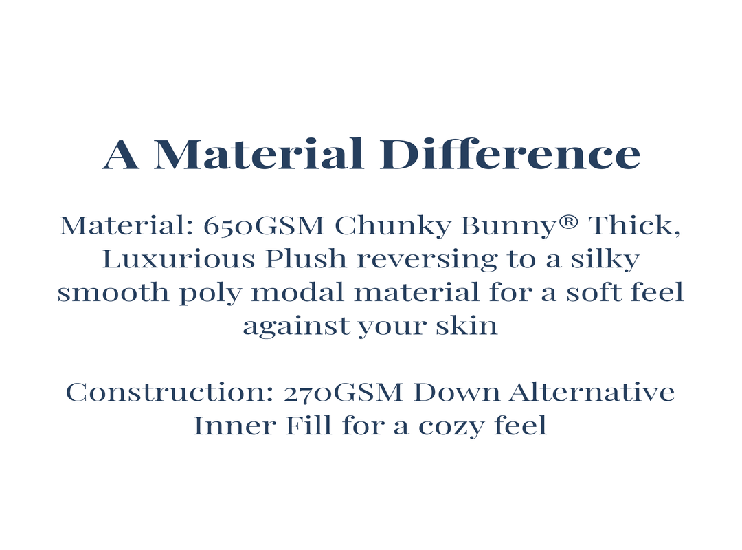 Inspired by all of the great customer feedback letting us know how much they love the soft touch of the Chunky Bunny® and the cooling comfort of our summer Coma Inducers. This made us think “why not combine the two into the ultimate cozy comforter?” If you’ve ever experienced the Chunky Bunny Coma Inducer® you’re probably thinking that the warmth of Chunky Bunny® and cooling don’t go together. Taking advice from one catchy kids' nursery rhyme, Peas Porridge Hot, we realized that some people like it hot and some like it cold, so why not create a comforter with temperature flexibility? The ultra soft 650 GSM Chunky Bunny faux fur is perfect for colder nights, while the reverse side of high quality poly modal adds a cool touch to your bedding when you need it most. Indulge in Bunny Heaven when you want to be warm and cozy or chill out when you’re feeling too warm, the Chunky Bunny Some Like It Cold Coma Inducer® lets you create the perfect sleeping space!