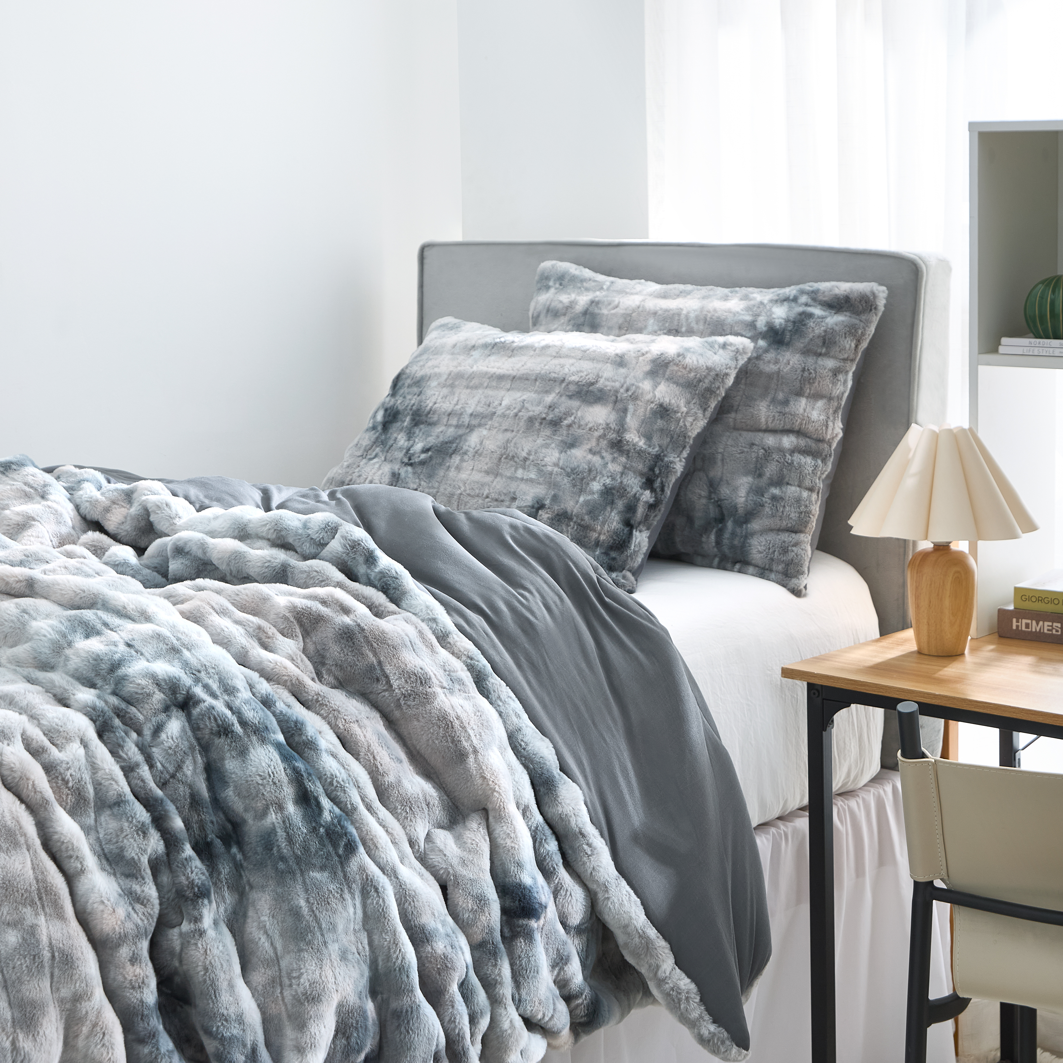 Inspired by soft, overly plump bunnies that know how to do yoga??! Not exactly, although there is goat yoga, so we can see how the new craze of bunny yoga could be a thing. Especially cute little bunnies that have a spotty pattern like this oversized plush comforter. Our Chunky Bunny® Spotty Yoga is really inspired by a Coma Inducer® collaboration. The 375 GSM faux fur plush material creates a cozy, soft, snuggle up warmth that is easy to fall in love with. While the reverse Yoga (Yoga Pants®) side provides the cozy softness that allows you to be warm without overheating. The differing plush materials come together to create the perfect cozy combination. Indulge in Bunny Heaven with the Chunky Bunny® Spotty Yoga that takes our Coma Inducer® plush bedding brand to a new level of comfort, indulgence, and style!