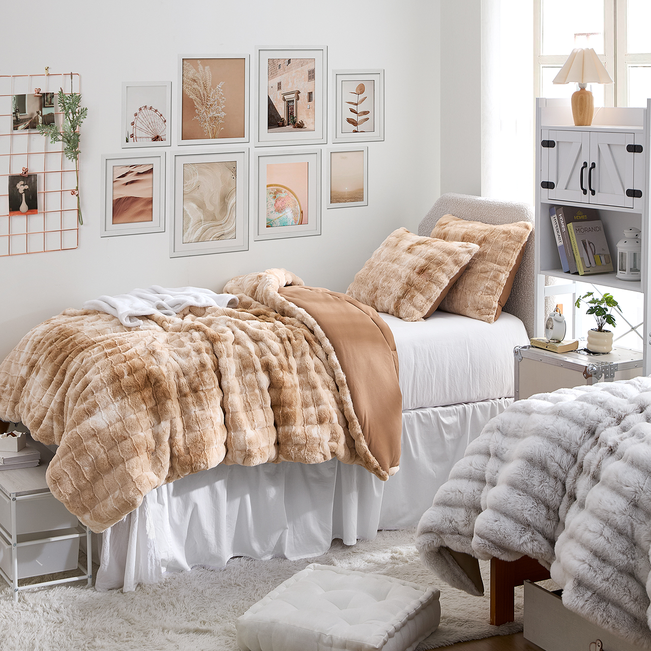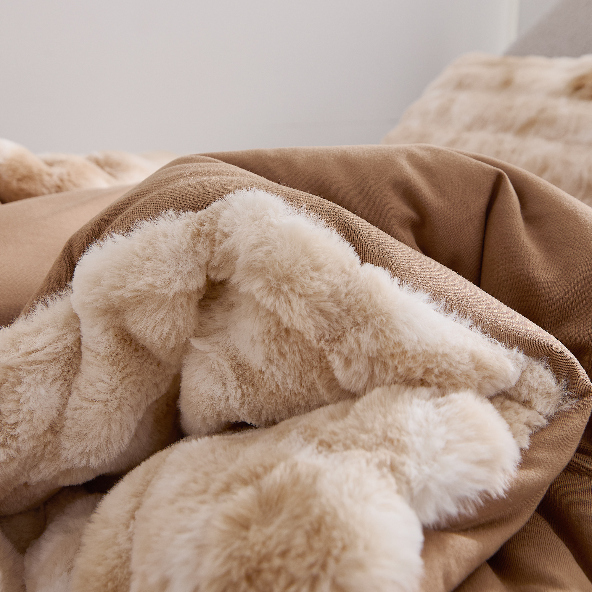 Inspired by soft, overly plump bunnies that know how to do yoga??! Not exactly, although there is goat yoga, so we can see how the new craze of bunny yoga could be a thing. Especially cute little bunnies that have a spotty pattern like this oversized plush comforter. Our Chunky Bunny® Spotty Yoga is really inspired by a Coma Inducer® collaboration. The 375 GSM faux fur plush material creates a cozy, soft, snuggle up warmth that is easy to fall in love with. While the reverse Yoga (Yoga Pants®) side provides the cozy softness that allows you to be warm without overheating. The differing plush materials come together to create the perfect cozy combination. Indulge in Bunny Heaven with the Chunky Bunny® Spotty Yoga that takes our Coma Inducer® plush bedding brand to a new level of comfort, indulgence, and style!