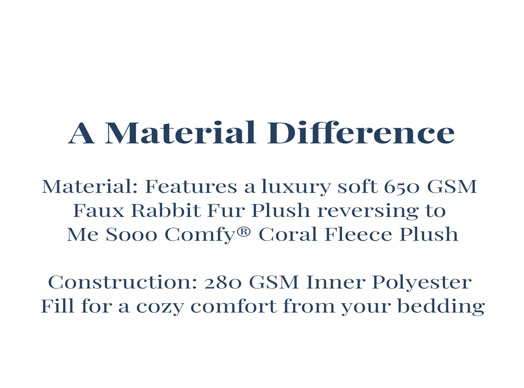 Inspired by creamy icing. If icing wasn't so messy, it would provide the coziest sleep. Since we can't turn real icing into bedding, we did the next best thing and created our Chunky Bunny with Frosting Coma Inducer®. This lusciously flowing plush just looks like a decadent dessert... like a cupcake or creamy frosted icing layered on your favorite birthday cake! Made with our ultra thick, can't stop running your hand through it, 650 GSM Chunky Bunny® plush, you'll never want to leave your bed again. Undoubtedly, the extra soft plush of our Chunky Bunny® feels like a family of cozy plush rabbits hopped on your bed and said 'cuddle up'. And, if that's not enough, the reverse side uses our 300 GSM Me Sooo Comfy® flannel and we've filled it with our high quality Grade A 280 GSM Coma Inducer® filling. So, the next time someone tells you not to eat dessert in bed, you can let them know that you have it all the time!