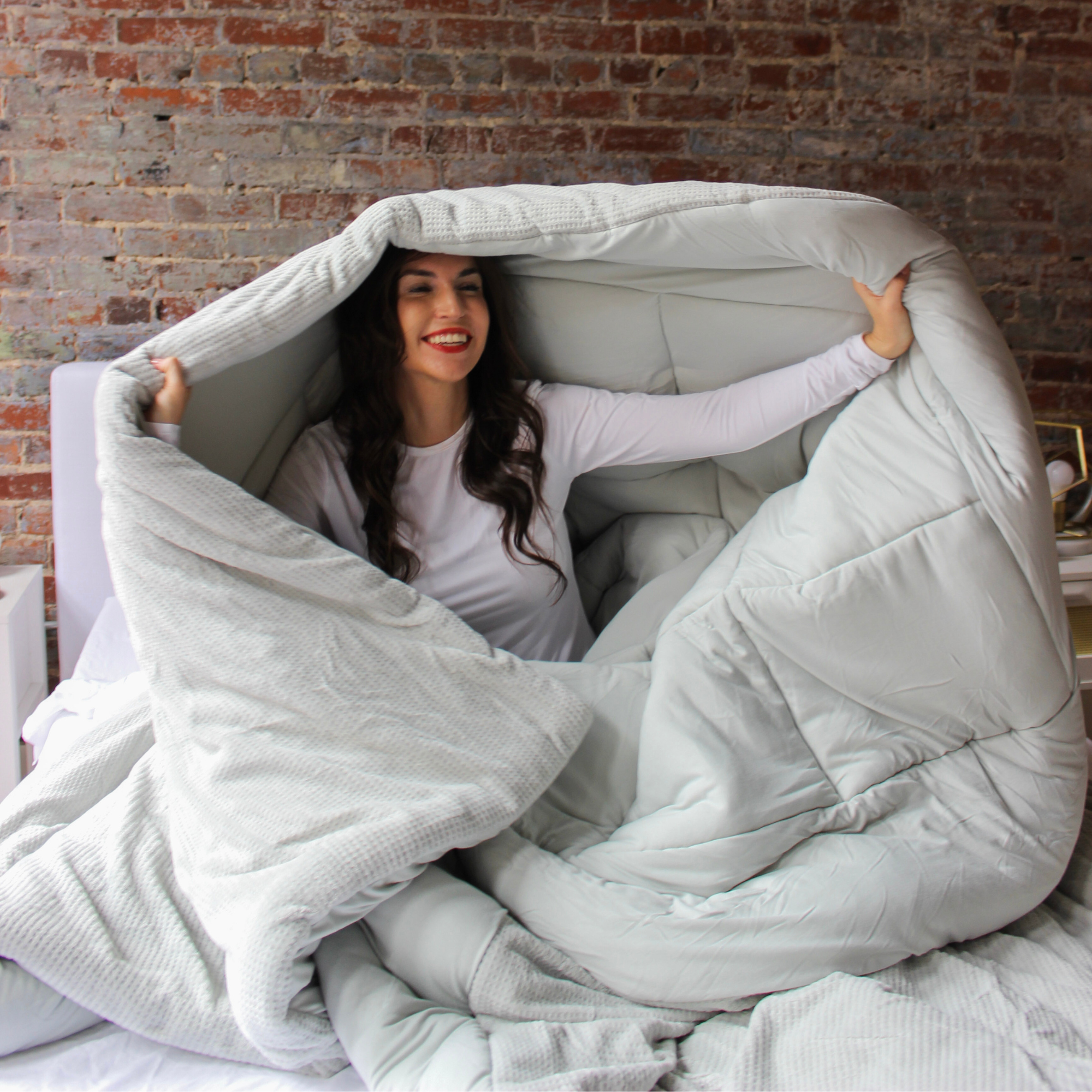 As a Coma-(holic) I personally own 2 Coma Inducer blankets and I absolutely LOVE them! Not sure if you read the feedback of your requests but I'd happily enjoy sharing mine with you! We were building our home last January and during the move, we upgraded to a king bed, so of course that required upgrading our bedding as well! I was doing some research on breathable, yet cooling comforters and I came across your website. I read multiple reviews and ended up purchasing one of the comforters. (The other was gifted) Once it came, it was like the UPS guy was Santa and I was the giddy child waiting by the door to receive my present that I had bought for myself.