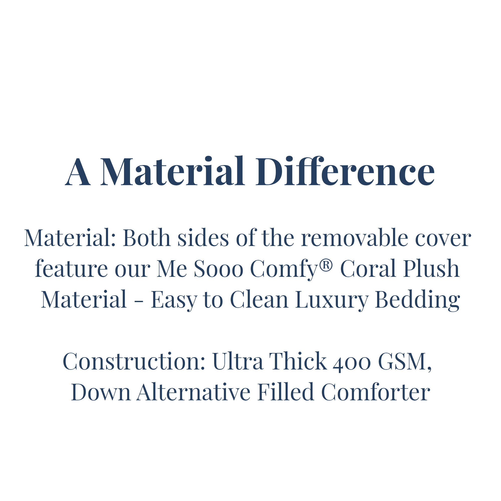 Inspired by pure overindulgence from your bedding. Designed around the concept of over-the-top comfort, Dam Bae, She Thick® combines every element you would want in a comforter. Starting with the outer material, an unbeatable combination of our 220 GSM Me Sooo Comfy® Coral Fleece and 330 GSM Coma Inducer® Original Plush... it is impossible to touch this material and not have your expectations exceeded. Next, the thick inner fill of the comforter insert gives you the cozy and fluffy looking bedding you’ve always dreamed about. While machine washable, the included cloud-like ultra-thick comforter insert is sometimes too large to fit in home sized washing machines. For this reason, the product is designed with the outer Coma Inducer® plush cover that is easily removable and machine washable - which is essential to keeping your bedding clean and refreshed! And, to ensure everything stays in place, this duvet cover and comforter insert set is designed with loops and ties to easily attach the pieces together. All three elements; cozy soft outer material, thick plush inner filling, and practical removable cover combine to create bedding perfection unlike anything you’ve experienced before.