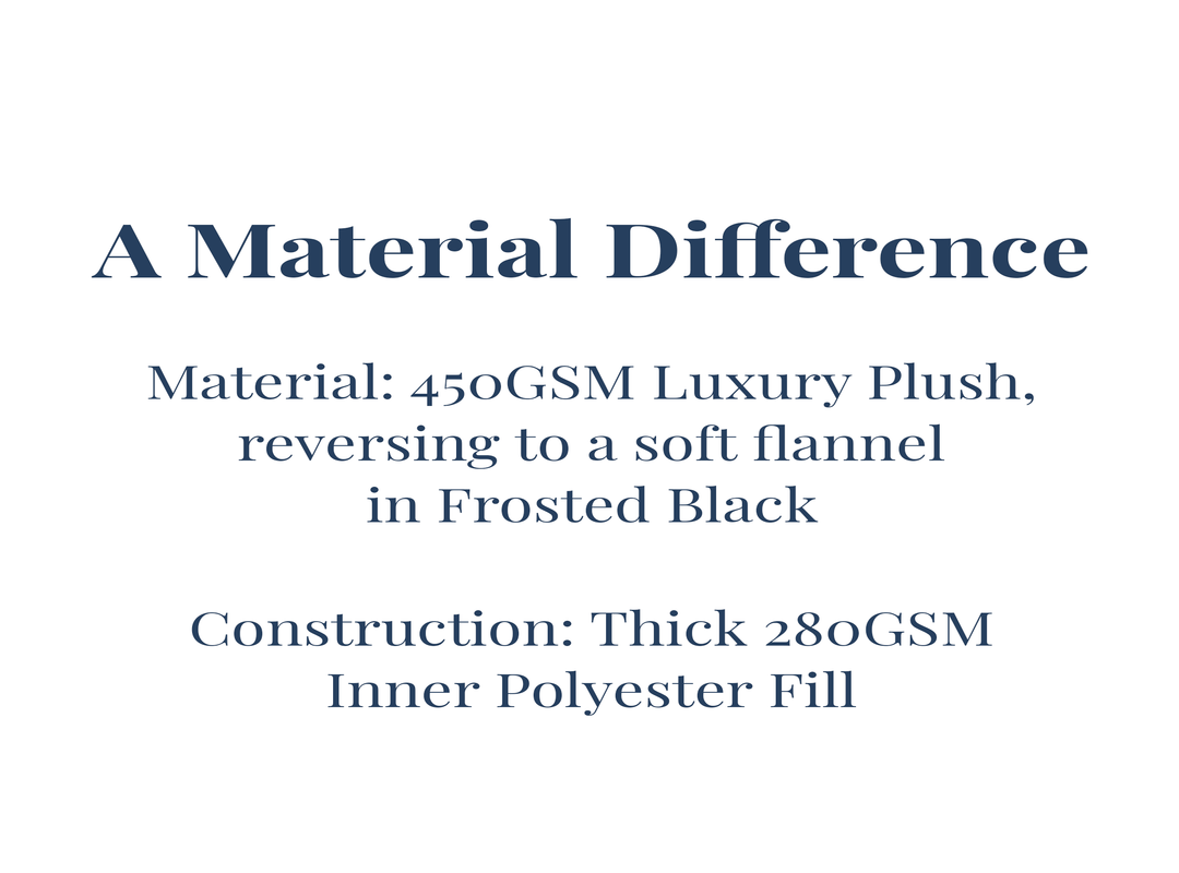 Our Chunky Bunny® luxury faux fur covers one side of this extra large reversible King comforter set, with a pure white color that is sure to dazzle in your bedroom decor. On the reverse, our velvety soft Frosted® plush provides even more coziness, featuring a white sheen over black fabric that creates a unique dark gray tone to easily match any of your other King XL bedding accessories. These two plush bedding materials encase a thicker than average inner fill, making this oversized King bedspread irresistibly cuddly. And if you just can’t get enough of the Coma Inducing comfort of this extra large King comforter set, you will be delighted by the oversized King bedding dimensions providing you with even more snuggleable comfort. Every inch of your King or California King mattress will be covered in winter-defeating warmth with this extra thick King oversized bedding set!