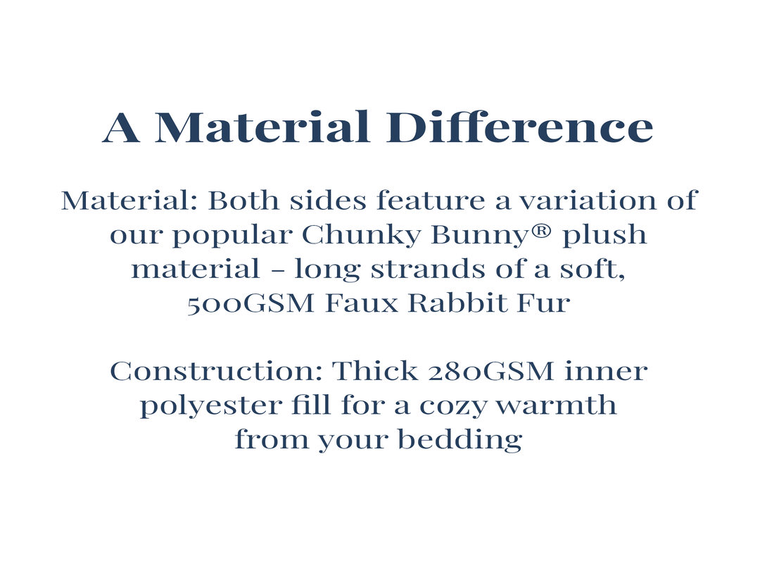 Inspired by a world of optimistic fluff. Most of the time when you hear that someone is "Full of " something, it doesn't have a positive meaning. Full of 'yourself'. Full of 'crap', Full of 'BS'.... or just Full of 'It'. That "it" doesn't sound so good, and it usually isn't! We thought, why not make "Full of" a positive phrase? After all, what could be better than a Coma Inducer® that is "Full of Fluff"? This oversized comforter is made with long 500 GSM plushy goodness for a similar fluffy look to the Are Your Kidding® which we've combined with the undeniably soft hand feel of our Chunky Bunny® to make Full of Fluff a superior Coma Inducer®. We love all of our Coma Inducers, so that's saying a lot! Its thick and fluffy filling combined with a cozy soft long furry exterior makes it a snuggly ball of fantastic fluff that will be sure to provide you with Coma Worthy Sleep®. Now, whenever you think of the phrase "Full of", you can think positive, irresistibly cozy, dreamy thoughts of your comfy bed being "Full of Fluff".