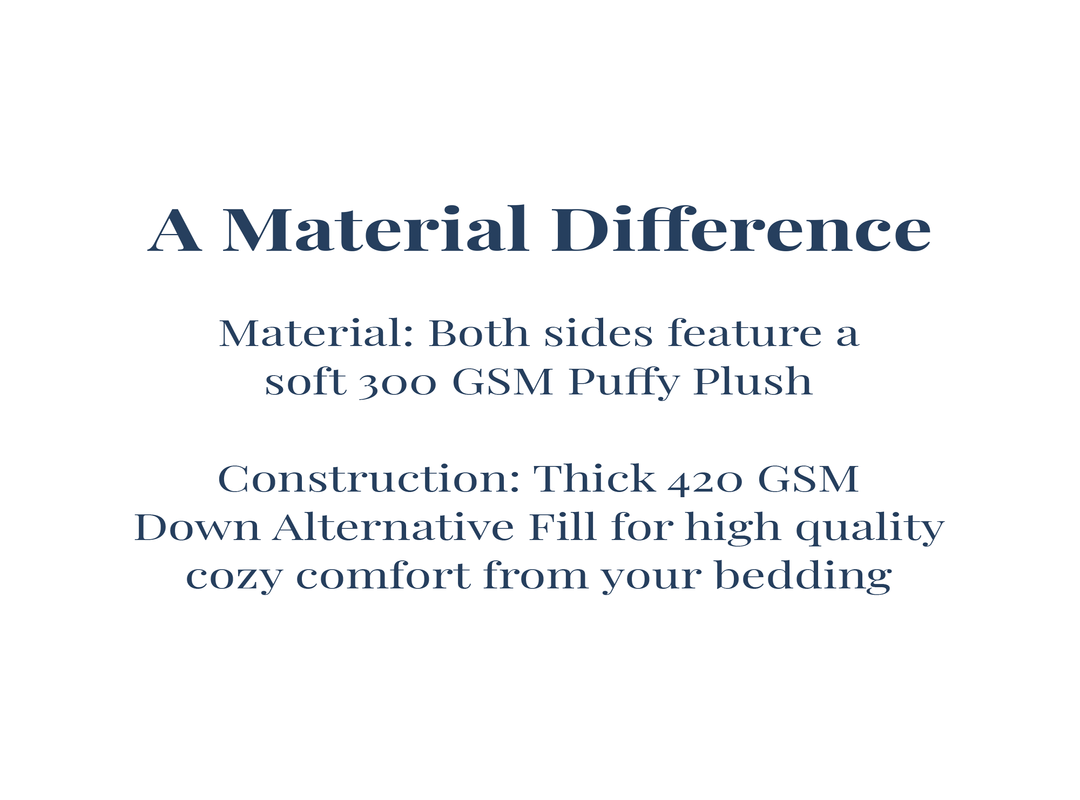 In addition to looking incredible, the luxury bedding materials we use to make the Git Puffy Cozy oversized King comforter are wonderfully soft and cozy. Both sides of this King XL thick comforter features a superbly soft 300 GSM puffy plush that is designed in a slightly raised unique dome pattern. The interior of this warm plush comforter is filled with a thick 420 GSM down alternative, making for a surprisingly lightweight and wildly cozy King XL comforter.