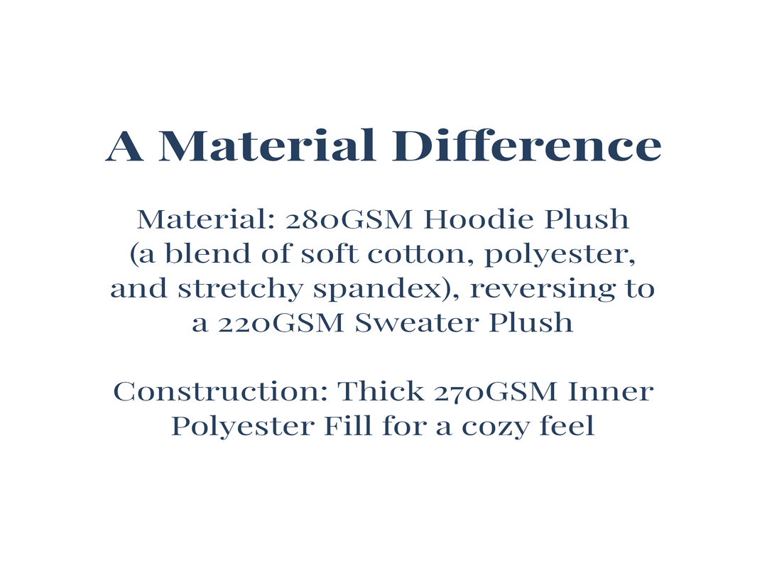 Inspired by our love for the hoodie. Who doesn't love tossing on an oversized hoodie? Have you ever put on a sweatshirt without a hood and immediately had to change into your go-to hoodie? If you have, then we know you understand the inspiration behind our Hoodie Sleep Coma Inducer®. We were so inspired by the hoodie that we actually came out with two versions of Hoodie Sleep. Our regular Hoodie Sleep which has the outside feel of a comfy sweatshirt reversing to soft plush sweater-like inside and our Inside Out Hoodie Sleep which feels like the plushy cozy inside of your favorite sweatshirt on both sides. Call it indecisive or call it over inspired but, if you love a hoodie, Coma Inducer® has you covered (literally). Our Hoodie Sleep provides a 280 GSM cozy softness that instantly comforts you and adds that little fur-like plush to ensure a snuggly softness. Certainly not a rugged hoodie! So if you love a good hoodie and want that Coma Worthy Sleep®, choose Hoodie Sleep to transform your bed into an oh so comfortable giant hoodie.