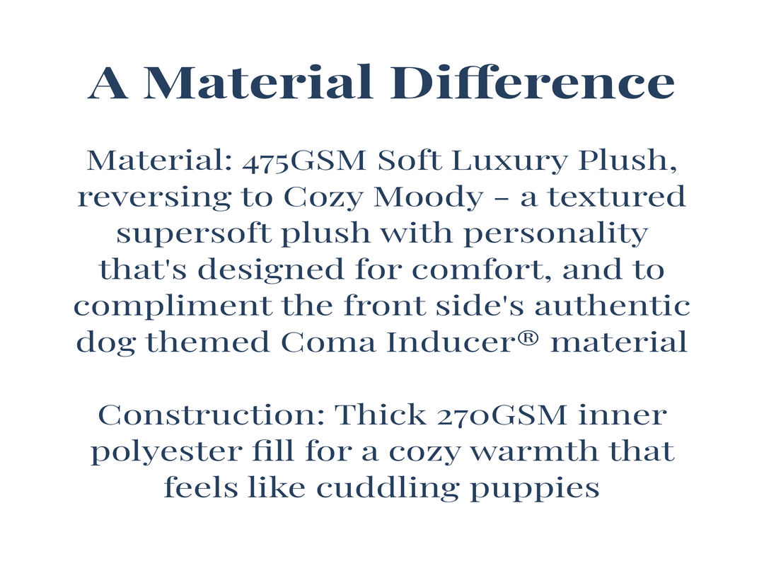 Inspired by our love of man's best friend. Who can resist snuggling up with their cute, cuddly, lovable dog at the end of a long day? Especially when your dog is in that super tired mode where they are almost like a breathing stuffed animal... yeah, that mode where you can lift a paw and it just flops down. It's the type of tiredness where you know you can do anything and they'll let you. That's the best. Coma Inducer® has taken our love for dogs to the next level with our Lagotto Romagnolo Coma Inducer®. Fully designed to bring the look and feel of a Lagotto Romagnolo to the comforts of your bed. Now, if you already have a real Lagotto Romagnolo, your dog might be confused as it tries to figure out how this comforter could be its twin. The warm, thick and cozy plush consists of 475 GSM of Lagotto Romagnolo-like coat to elevate your bed to doggy heaven status. The furry top is paired with a smooth plush that can best be described as petting your dog's tummy as you fall into Coma Worthy Sleep®. Did we go overboard... sure, that's what we do at Coma Inducer®. Everything oversized, over-plush and over-authentic, right down to the color tones chosen to match the certain coloring of the cute Lagotto Romagnolo.