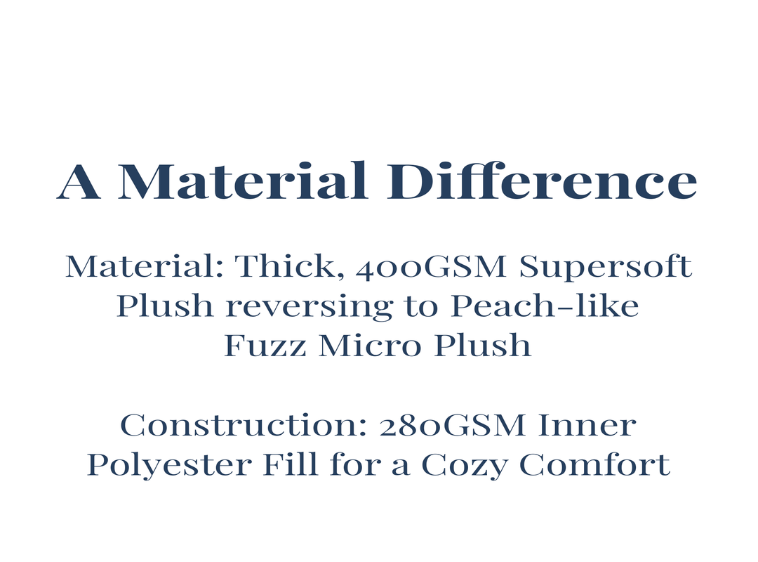 - Material: Thick, 400GSM Supersoft Plush reversing to Peach-like Fuzz Micro Plush