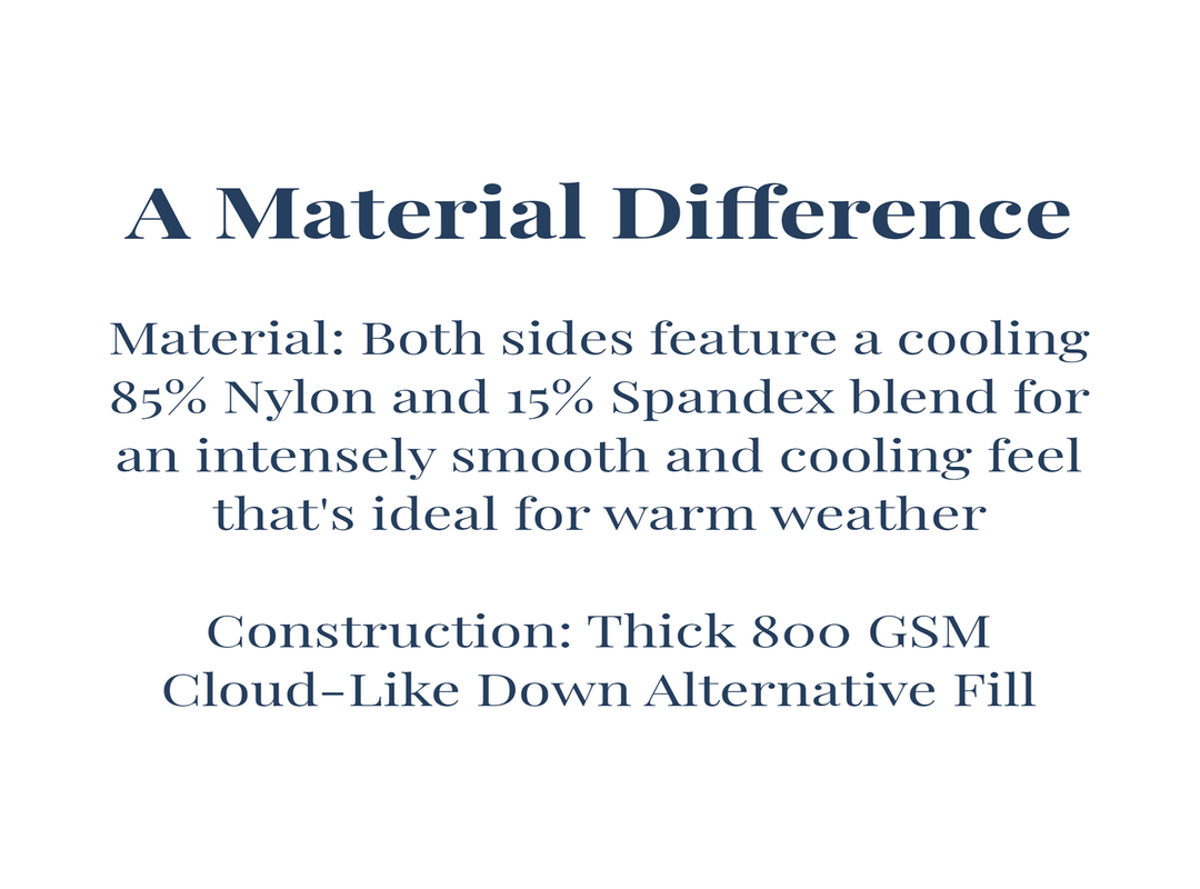 Inspired by our customers. Our most common request over the past few years has been to create a cloud-like comforter that is overly thick, fluffy, and yet not super hot. It's been quite the conundrum. The idea of something that's the thickest, yet somehow is still lightweight and not hot is like asking for a bedroom to be dark while keeping on a light. How can you take two things that are opposite and still create the desired request? After much time and effort we think we did it!! Look At This Thicky Coma Inducer® is the best of both worlds, the ultimate combination of the thickest comforter that is fluffy cozy yet doesn't overheat. With an exterior outer material similar to our Cool It Boi, a 180 GSM nylon / spandex blend, you'll have a super silky soft hand feel that's very cooling to the touch. Now, if we left it at that, it would be just another top-of-the-line cooling comforter for summer, however we heard your requests! We took this cooling plush material and paired it with our best-of-the-best down alternative, cloud-like fluffy filling. We created a 'standard' 800 GSM filled version that can be compared to our Thicker Than Thick Coma Inducer® filling which, as the name suggests, is pretty thick! While the thickness of this cooling comforter is above average, it would be considered standard next to our new world record, 1600 GSM filled version, which we politely named Extra Thicky. We say politely because 1600 GSM is absolutely, 100% unheard of for a thickness level. It doesn't exist, at least, it didn't until we made it a reality. It's truly insane, but you challenged us and here at Coma Inducer®, we tend to go next level when challenged!! Whether you opt for the Standard or the Extra Thicky, it is safe to say Look At This Thicky Coma Inducer® accomplishes the goal of mixing the worlds of coolness and thickness to create a truly one-of-a-kind sleep experience.