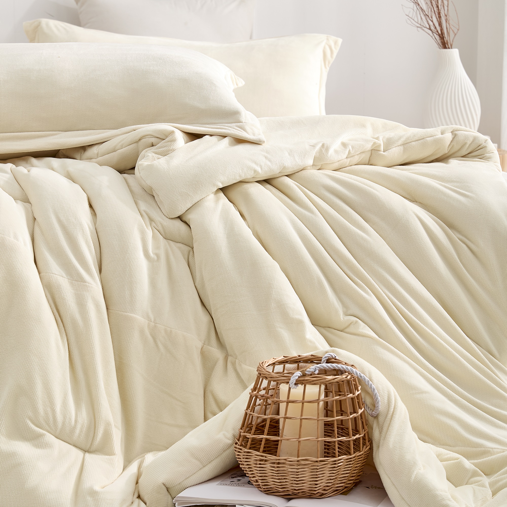 At Coma Inducer®, our luxury bedding experts always aim to go above and beyond every time we design a new premium comforter set. And with the Love Thick® - So Smooth Coma Inducer® Alaskan King Comforter Set - Custard Cream, we think we’ve really outdone ourselves! This extra large Alaskan King bedding set is designed with the principle of not letting any detail slip through the cracks. So even though the ultra thick down alternative filling is the star of the show, we didn’t cut corners on any other aspect of this Alaskan King premium comforter set. After all, what’s the point of an outrageously thick Alaskan King bedding set, if that outer fabric isn’t soft and cozy or if it barely fits your Alaskan King mattress dimensions?