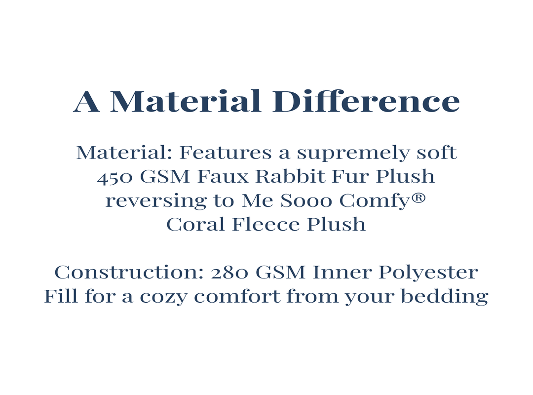 In addition the luxurious Chunky Bunny® plush featured on the top side of this King XL unique bedding, the reverse features our short smooth plush called Me Sooo Comfy®. This cozy coral fleece plush feels incredibly soft and comfy against your skin, but you could also flip the thick King comforter if you wanted to sleep against the faux fur Chunky Bunny® side--it's up to you! Add trendy King XL bedding to your unique bedroom decor with this comfy faux-fur oversized King comforter set in Moss Taupe!
