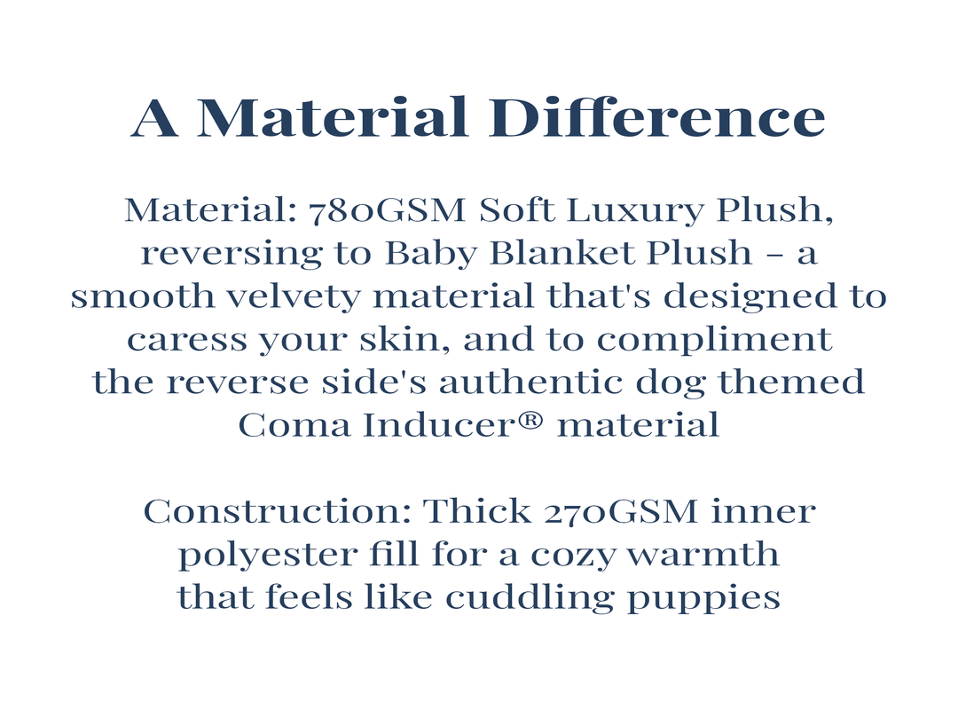 Inspired by our love of man's best friend. Who can resist snuggling up with their cute, cuddly, lovable dog at the end of a long day? Especially when your dog is in that super tired mode where they are almost like a breathing stuffed animal... yeah, that mode where you can lift a paw and it just flops down. It's the type of tiredness where you know you can do anything and they'll let you. That's the best. Coma Inducer® has taken our love for dogs to the next level with our Redhaired Husky Coma Inducer®. Fully designed to bring the look and feel of a Siberian Husky with red fur to the comforts of your bed. Now, if you already have a real Redhaired Husky, your dog might be confused as it tries to figure out how this comforter could be its twin. The warm, thick and cozy plush consists of 780 GSM of Husky-like coat to elevate your bed to doggy heaven status. The furry top is paired with a smooth plush that can best be described as petting your dog's tummy as you fall into Coma Worthy Sleep®. Did we go overboard... sure, that's what we do at Coma Inducer®. Everything oversized, over-plush and over-authentic, right down to the color tones chosen to match the certain coloring of the majestic Redhaired Husky.