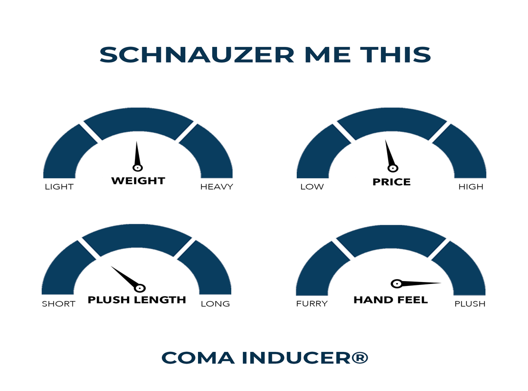 Inspired by our love of man's best friend. Who can resist snuggling up with their cute, cuddly, lovable dog at the end of a long day? Especially when your dog is in that super tired mode where they are almost like a breathing stuffed animal... yeah, that mode where you can lift a paw and it just flops down. It's the type of tiredness where you know you can do anything and they'll let you. That's the best. Coma Inducer® has taken our love for dogs to the next level with our Schnauzer Me This Coma Inducer®. Fully designed to bring the look and feel of a Schnauzer to the comforts of your bed. Now, if you already have a real Schnauzer, your dog might be confused as it tries to figure out how this comforter could be its twin. The warm, thick and cozy plush consists of 465 GSM of Schnauzer-like coat to elevate your bed to doggy heaven status. The ultra furry top is paired with the same great material for the reverse side. So much Schnauzer goodness that you'll enjoy Coma Worthy Sleep®. Who knows, maybe someone could pick up your leg and drop it without you realizing it! Did we go overboard... sure, that's what we do at Coma Inducer®. Everything oversized, over-plush and over-authentic, right down to the color tones chosen to match the certain coloring of the cute Schnauzer.