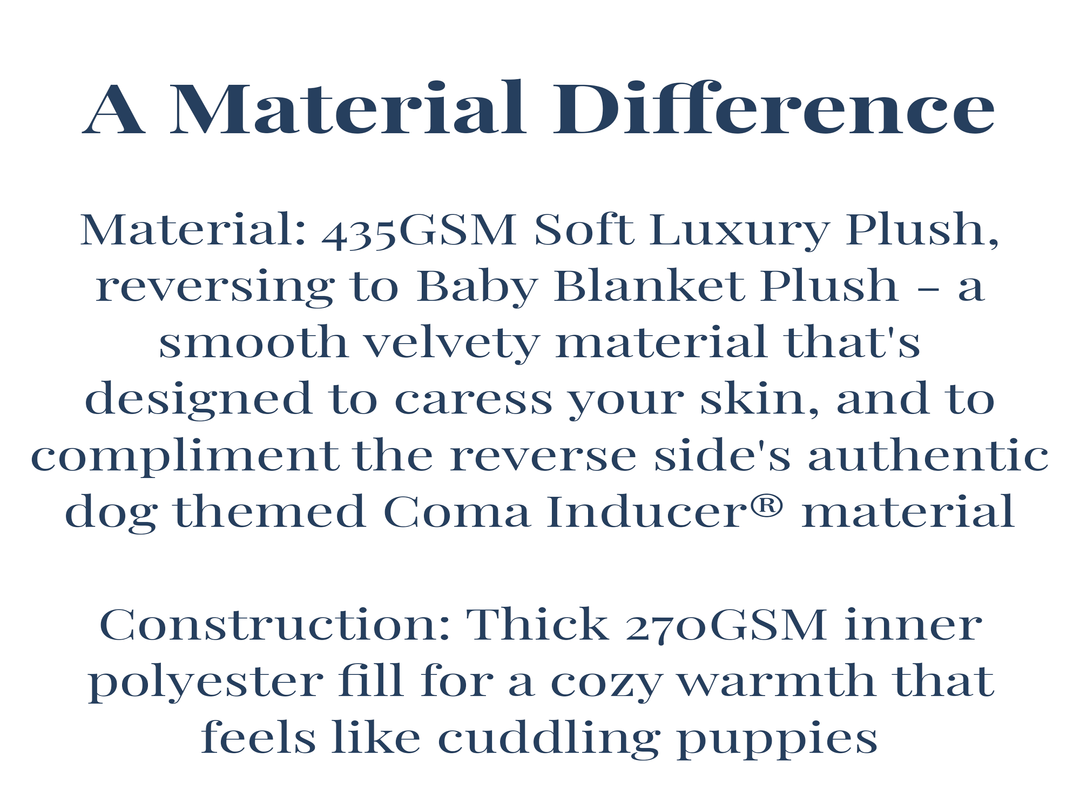 Inspired by our love of man's best friend. Who can resist snuggling up with their cute, cuddly, lovable dog at the end of a long day? Especially when your dog is in that super tired mode where they are almost like a breathing stuffed animal... yeah, that mode where you can lift a paw and it just flops down. It's the type of tiredness where you know you can do anything and they'll let you. That's the best. Coma Inducer® has taken our love for dogs to the next level with our Shiba Inu Coma Inducer®. Fully designed to bring the look and feel of a Shiba Inu to the comforts of your bed. Now, if you already have a real Shiba Inu, your dog might be confused as it tries to figure out how this comforter could be its twin. The warm, thick and cozy plush consists of 435 GSM of Shiba Inu-like coat to elevate your bed to doggy heaven status. The furry top is paired with a smooth plush that can best be described as petting your dog's tummy as you fall into Coma Worthy Sleep®. Did we go overboard... sure, that's what we do at Coma Inducer®. Everything oversized, over-plush and over-authentic, right down to the color tones chosen to match the certain coloring of the adorable Shiba Inu.
