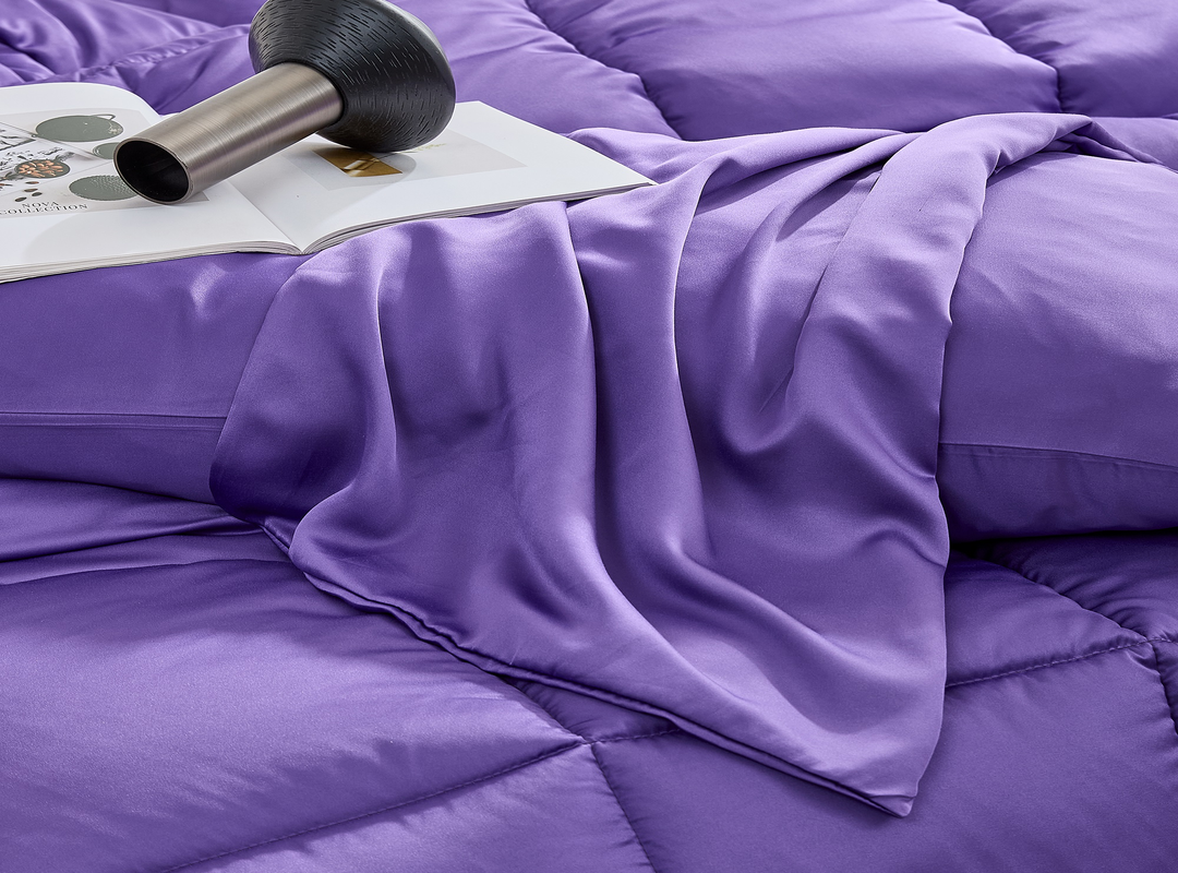 This oversized purple comforter set is designed to provide you with next-level comfort and coziness. This lightweight smooth comforter is filled with a cloud-like down alternative, which makes for a puffy, squishy lightweight comforter that is perfect for squeezing and cuddling with! Additionally, this luxurious comforter set comes in a vibrant shade of purple called Passion Flower that will transform your unique bedroom into cozy paradise. Sleep like you've never slept before with the lightweight silky smooth Snorze® Cloud Comforter Coma Inducer® Ultra Cozy Bamboo oversized comforter in Passion Flower purple!
