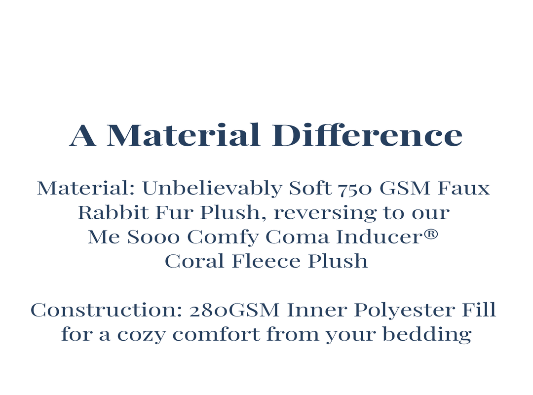 Inspired by the fun of winter. Winter's not all bad with cozy fireplaces, hot chocolate, skiing, and, of course, snuggling up in a Coma Inducer®. Dreaming of winter fun, we took our beloved Chunky Bunny® material and created a snowball-like textured pattern to give your bedroom the feeling of a winter wonderland. Utilizing an intensely soft 750 GSM rabbit-esque plush faux fur coupled with the Me Sooo Comfy Coma Inducer® material creates a comfort that will have you excited about winter. As the nights get darker earlier, you'll find more and more excuses to go to bed at hours so early, they seem unimaginable. It's true... but don't take our word for it, give our Snowball® Chunky Bunny Coma Inducer® a try and find out for yourself. Happy Winter. :)