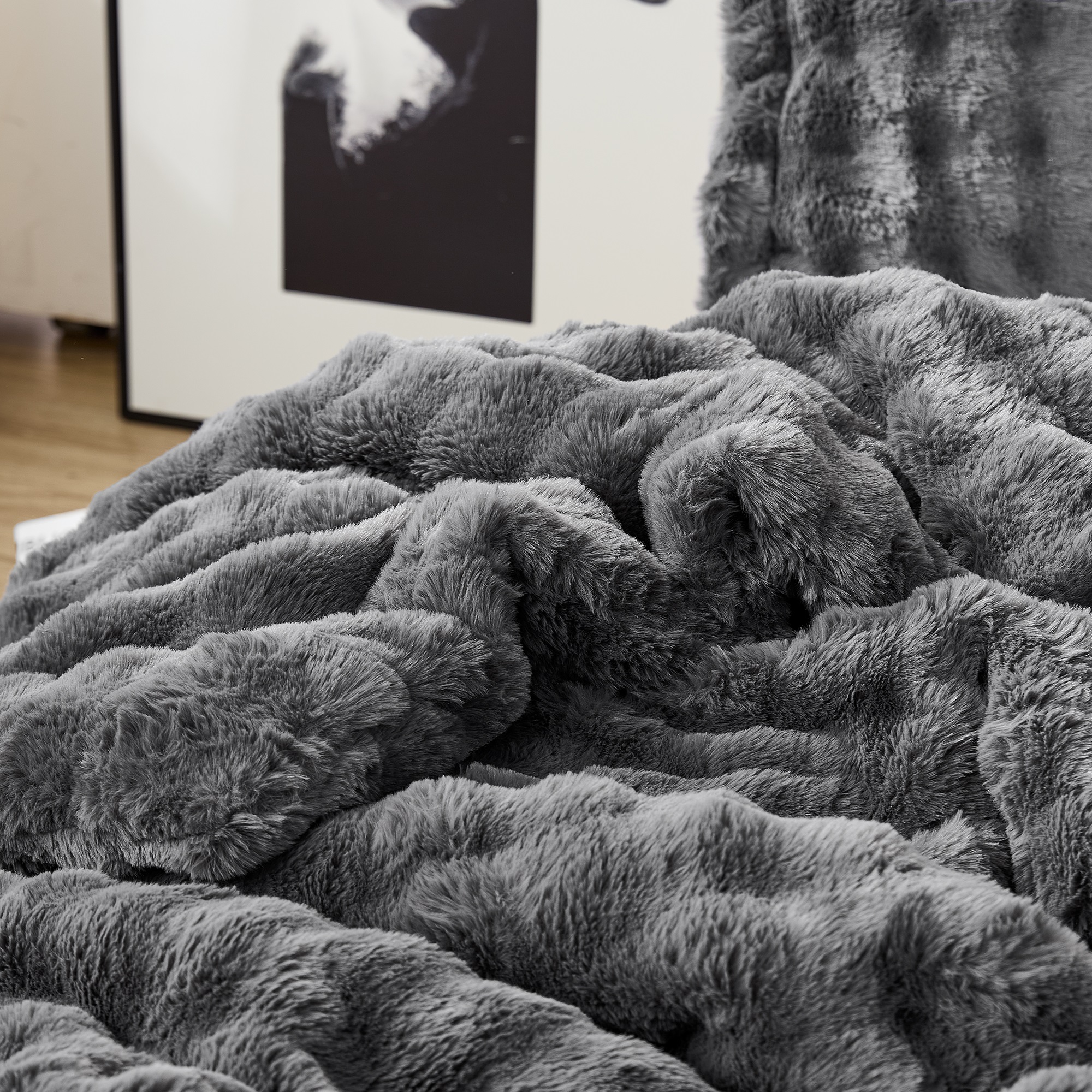 The Snowball® Double Chunky Bunny® Coma Inducer® oversized Queen faux-fur comforter set in Baby Thunderstorm Gray is so soft, you're going to want to cancel plans just to stay home and go to sleep (or maybe just run your hands obsessively through the ridiculously soft plush). If your friends give you a hard time, have them come over and feel the soft, double-sided plush faux fur for themselves, and they'll definitely understand. In fact, they'll probably ask to spend the night! The luxurious, thick, rabbit-inspired faux fur is featured on both sides of this cozy Queen bedding, so even the most restless sleepers won't have to worry about losing contact with the addictively soft plush.